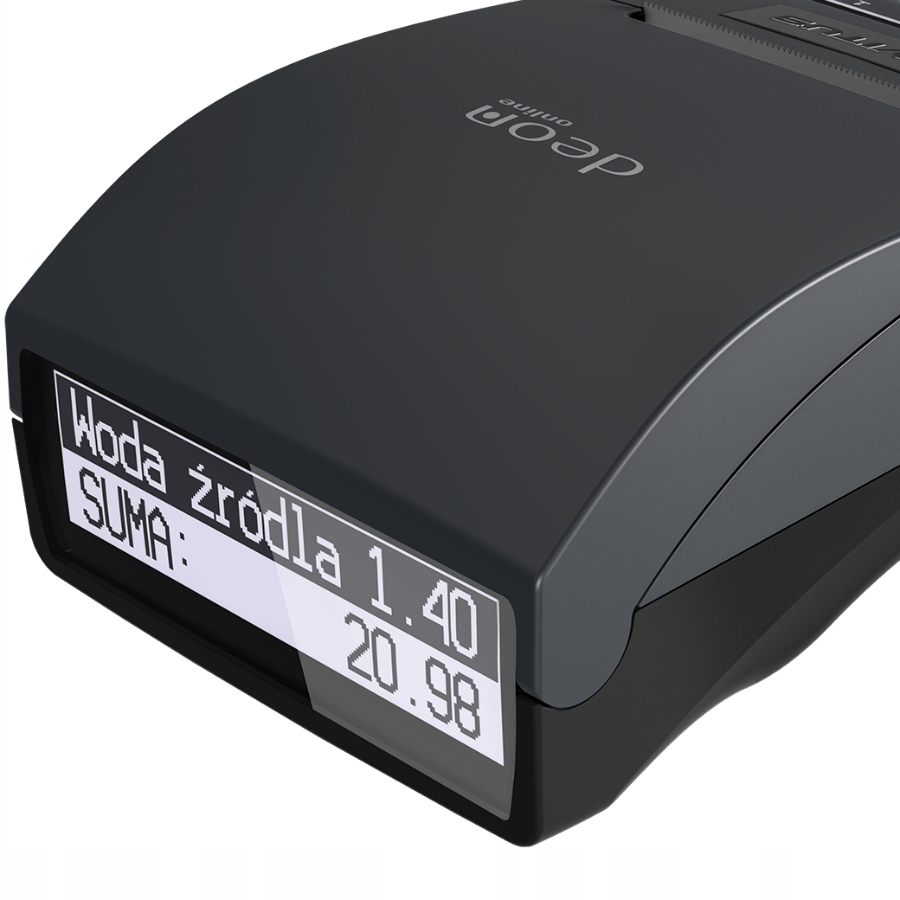 Принтер оснащений надійним механізмом друку від японської компанії Fujitsu, перевіреним на сотнях тисяч фіскальних пристроїв. Використання розкладного механізму робить операцію заміни паперу легкою. Здійснюється за принципом «встав і працюй». Переваги цього рішення оцінить кожен користувач, особливо той, хто використовує принтер для портативної роботи. Можливість використання паперу довжиною 30 метрів дозволяє надрукувати до 300 квитанцій на одному рулоні. DEON Online має можливість друкувати графіку в заголовку квитанції, програмувати назву продукту до 40 символів і друкувати ідентифікаційний податковий номер покупця на квитанції.
