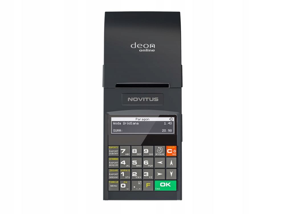 Ергономічна клавіатура є основою для ефективної роботи, програмування та звітності. DEON Online має клавіатуру з підсвічуванням, що полегшує роботу навіть у повній темряві, а її силіконова поверхня захищає пристрій від умов навколишнього середовища, таких як дощ або сніг, бруд або випадкова пролита рідина. Барвиста клавіатура касового апарата з чудовим підсвічуванням і чіткою інформацією базується на дуже точних перемикачах, що робить роботу дуже простою та приємною. Клавіатура ідеально поєднана з новими РК-дисплеями з роздільною здатністю 192x48 пікселів