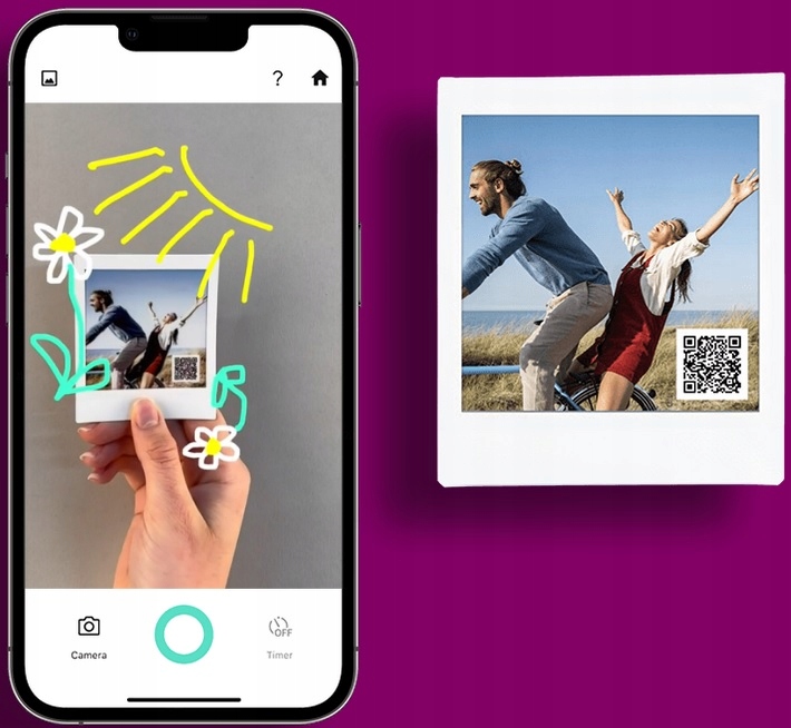 Пориньте у світ нескінченних можливостей із AR Print. Це перший режим друку в історії INSTAX, який надає відбиткам додатковий вимір. Просто відскануйте QR-код своїм смартфоном.