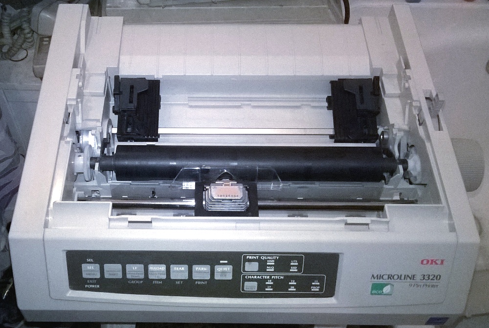 СУЧАСНИЙ І ДУЖЕ ШВИДКИЙ ПРИНТЕР OKI 3320 ECO USB LPT 10 ДОЛАРІВ без лотків (МАЄ ВБУДОВАНИЙ РОЗ’ЄМ USB ТА LPT) з кабелем USB і новою чорнильною стрічкою.