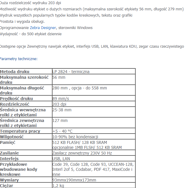 Оплачивая «Принтер Zebra LP2824 RS FVGW USB-этикетировщик», вы можете быть уверены, что данный товар из каталога «Принтеры этикеток» будет доставлен из Польши и проверен на целостность. В цене товара, указанной на сайте, учтена доставка из Польши. Внимание!!! Товары для Евросоюза, согласно законодательству стран Евросоюза, могут отличаться упаковкой или наполнением.