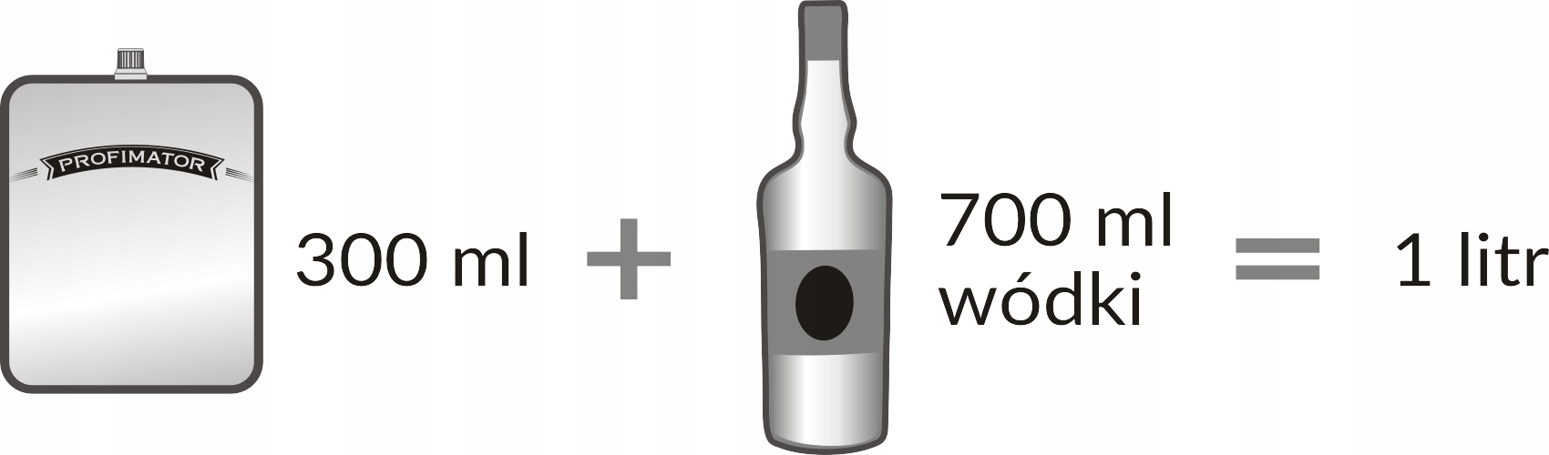 Просто додайте 1 пляшку 40% горілки (700 мл) до 1 пакетика (300 мл) PRFIMATOR, щоб отримати 1 літр готової настоянки.