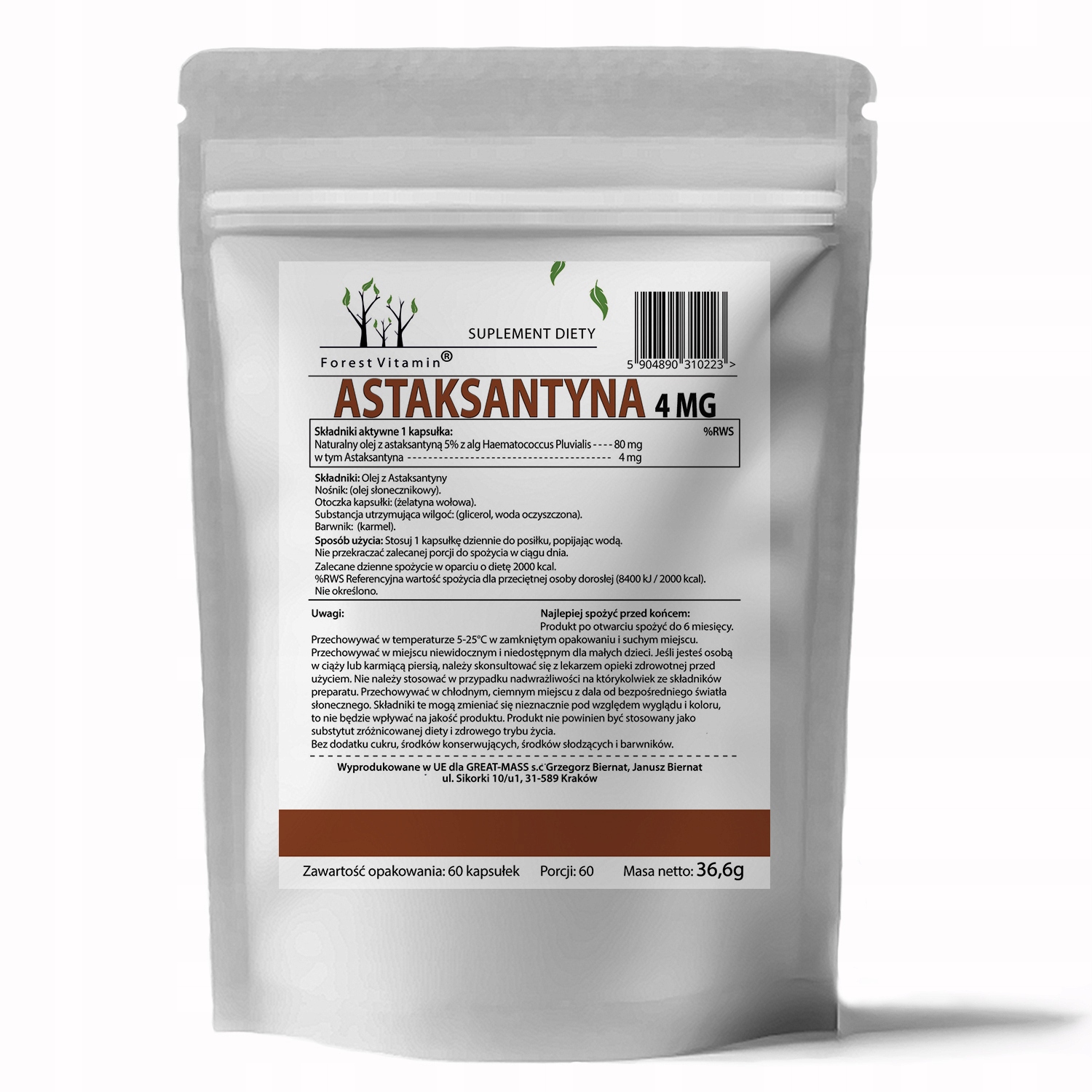 лісовий вітамін астаксантин 4 мг - це дієтична добавка високої якості у формі м'яких капсул, що містить природний астаксантин, отриманий від haematoccus pluvialisics. Цей продукт забезпечує до 4 мг чистого астаксантину в одній капсулі, що робить його сильним союзником тіла в боротьбі з окислювальним стресом.