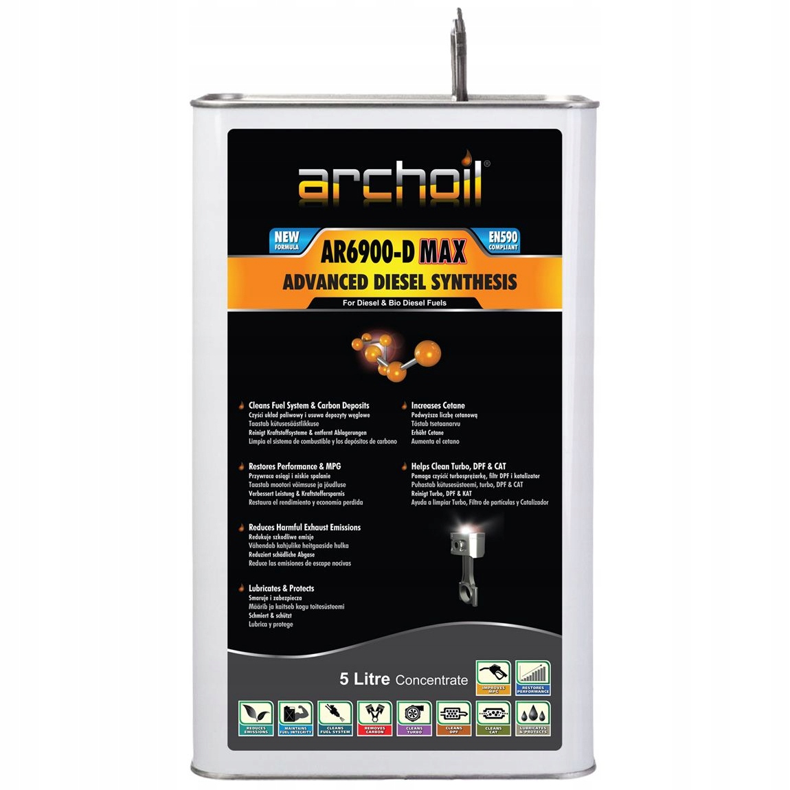 AR6900 -D MAX сумісний і покращує будь-яке дизельне паливо, яке відповідає стандарту EN 590.