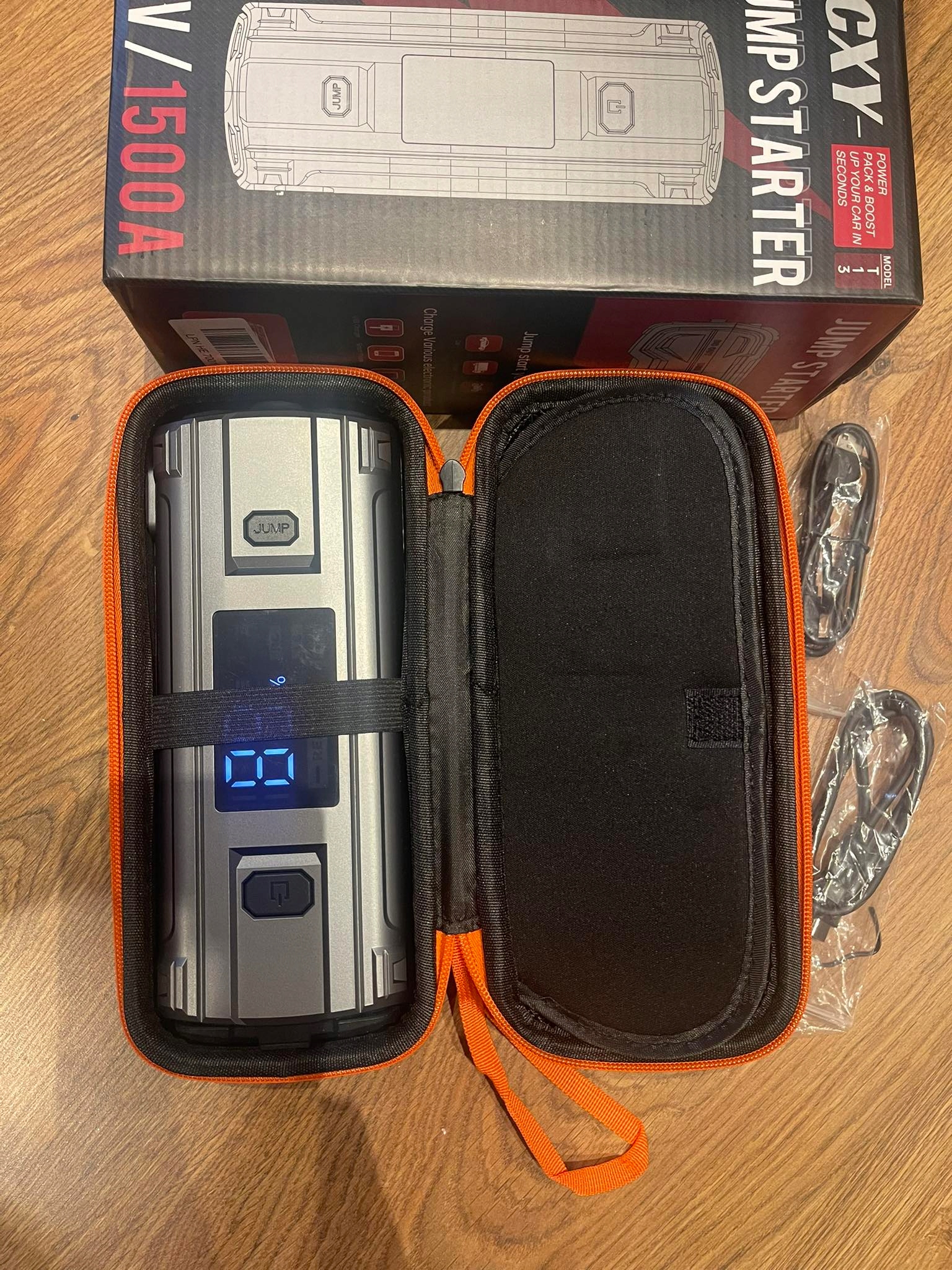 - 【Потужний автомобільний пусковий пристрій 1500 A Peak】 Портативний автомобільний пусковий пристрій Cxy T13 із суперпіковим струмом 1500 A та ємністю батареї 16000 мАг, який може безпечно та точно запустити ваш автомобіль із акумулятором 12 В до 7,0 газу або 4, 5 літрів дизельних автомобілів менш ніж за 30 секунд. Він може досягти 30 обертів на одному повному заряді. Ви можете тримати пусковий пристрій у своєму автомобілі, щоб спокійно запускати його будь-де та будь-коли.