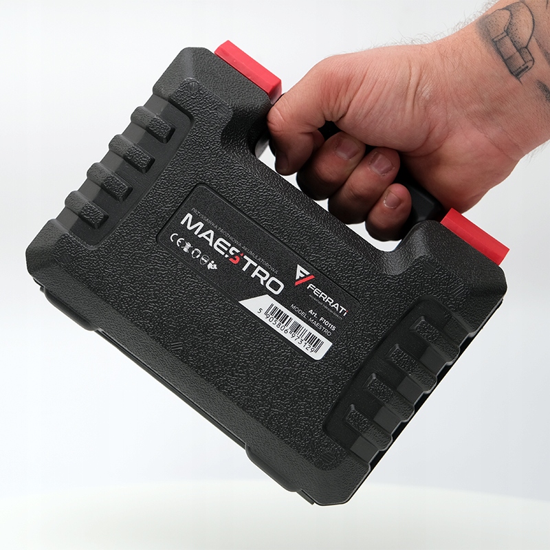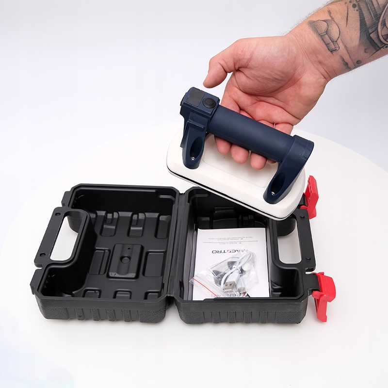 maestro - компактна вакуумна присосна чашка з акумулятором для плитки та панелей Maestro - це високоякісна, автоматична вакуумна присосна чашка акумулятор, розроблений спеціально для перенесення панелей та плитки з меншими розмірами. Завдяки надзвичайно компактній конструкції Ідеально підходить для форматів з 95 × 170 мм, забезпечуючи Комфорт та безпека роботи. Пристрій оснащений автоматичним Вакуумний насос, який підтримує постійний рівень вакууму - навіть Під час інтенсивного використання та з максимальною вантажопідйомністю до 100 кг. Це гарантує повний контроль над транспортованим матеріалом та зручністю та Безпека на кожному етапі роботи. Біла силіконова основа забезпечує відмінну адгезію як на гладку, так і на грубий, незалежно від температури навколишнього середовища. Побудований -in Акумулятор 1200 мАг, заряджений USB-C Швидкий час зарядки (до 3 годин - залежно від зарядного пристрою) дозволяє Ефективна організація роботи на будівельному майданчику. Ціле закрито твердим Транспортна валіза, яка захищає пристрій під час зберігання та Сприяє його безпечному руху.