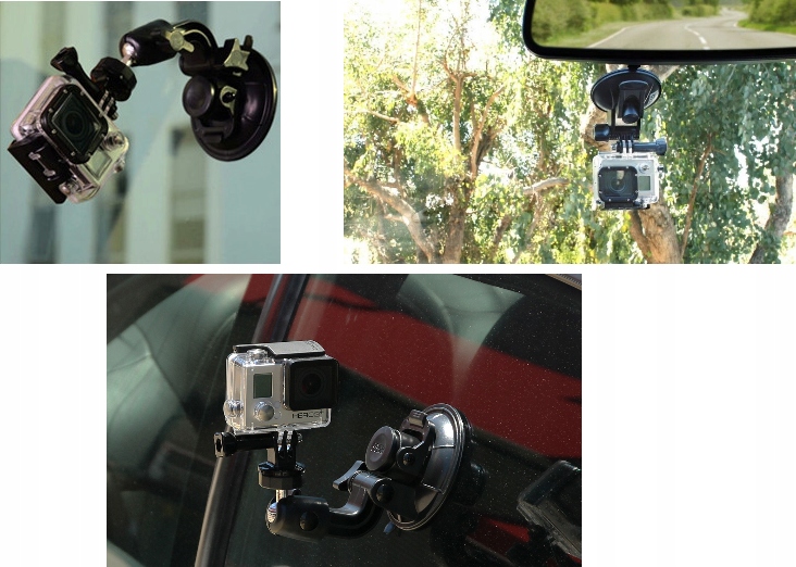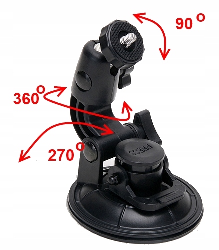 Універсальний автомобільний тримач з різьбою 1/4" кріпиться за допомогою присоски на скло або іншу гладку поверхню. Завдяки цьому ви зможе без будь-яких проблем записувати вашу поїздку та оточення без необхідності тримати камеру в руці.