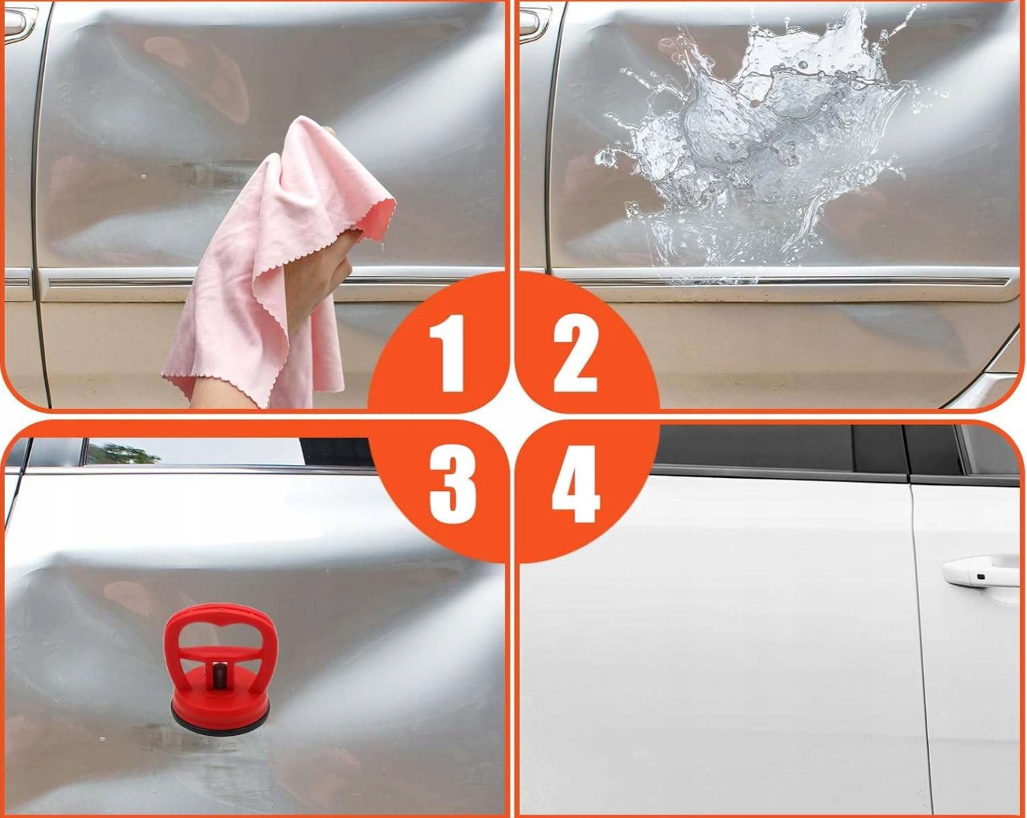- Висока якість Автомобільна присоска з високоякісного матеріалу PP + PVC ергономічна і зберігає міцність. Основа виготовлена з м'якого гумового матеріалу та має сильну всмоктувальну силу. М’яка гумова накладка має м’яку поверхню, а надміцна присоска для ремонту вм’ятин не залишить подряпин на фарбі автомобіля.