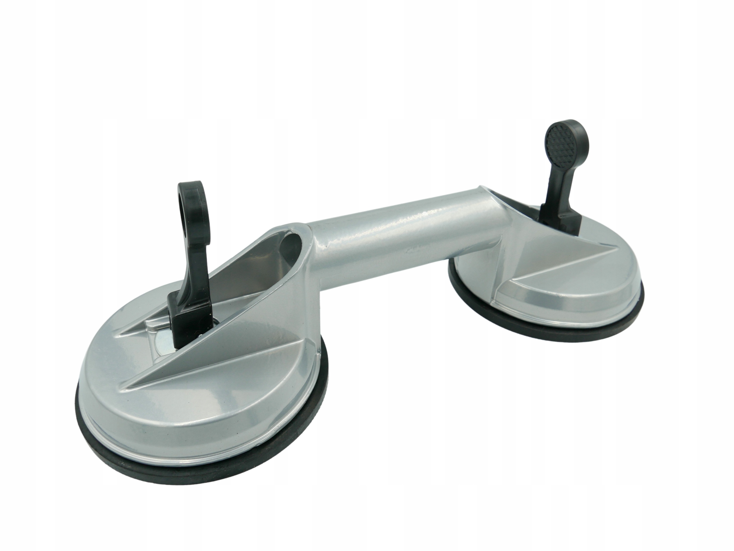 Подвійна скляна присоска — це корисний інструмент, який забезпечує не тільки ефективне, але й безпечне перенесення великих скляних панелей. Він також підходить для переміщення великих гладких плит з металу, мармуру або пластику. Присоска оснащена високоякісною подвійною гумою та ергономічною ручкою.