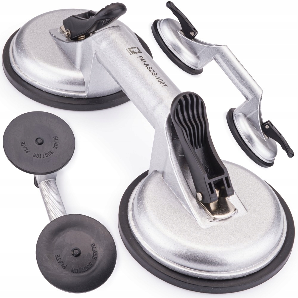 Високоякісний тримач/присоска POWERMAT, призначений для рухомих елементів з плоскою та гладкою поверхнею, таких як скло, вікна, автомобільні вікна, листовий метал, ламінат тощо ., вага яких не перевищує 100 кг. Якісна гумова присоска забезпечує надійне та безпечне перенесення елементів. Корпус ручки виготовлений з високоякісного пластику.