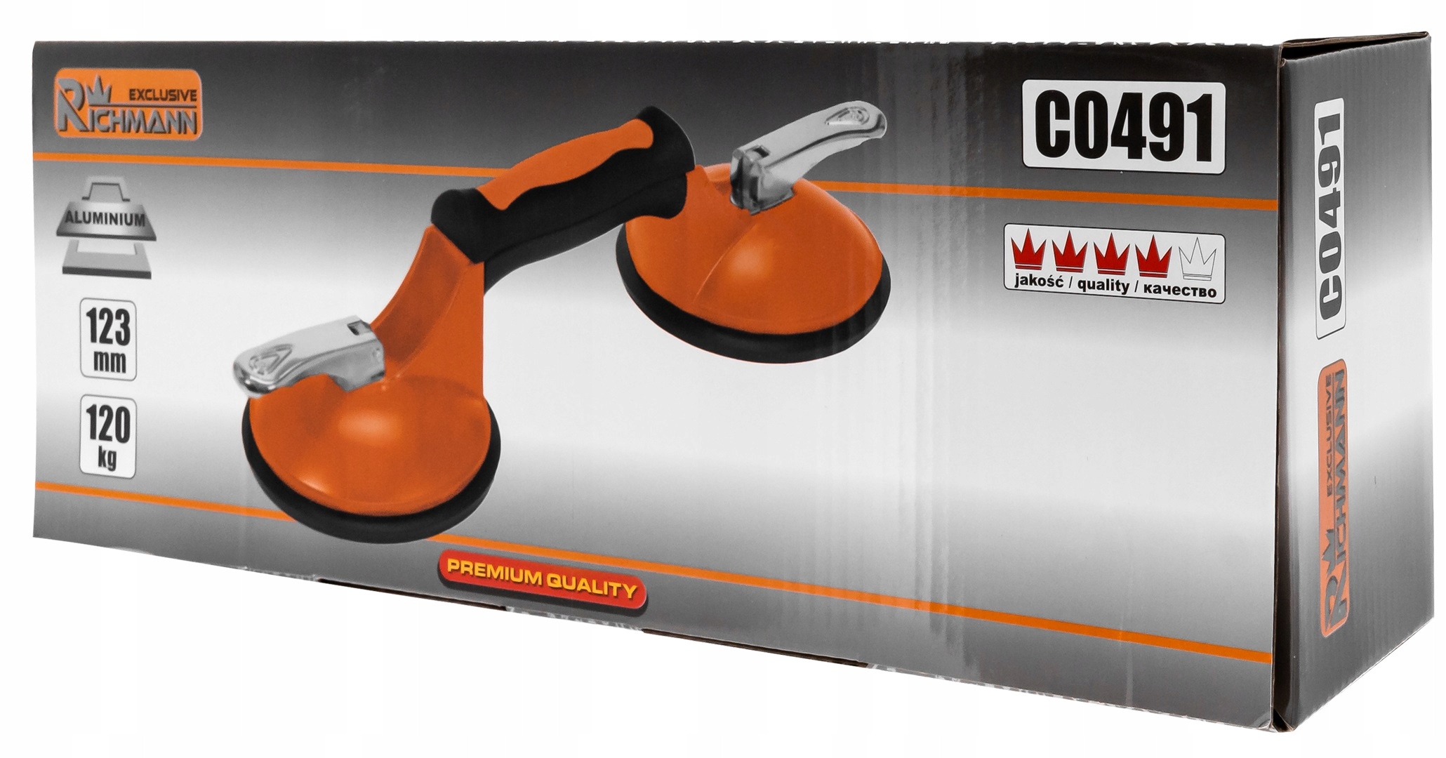Присоска подвійна алюмінієва, діаметр 2х123 мм, вантажопідйомність 120 кг, скло RICHMANN