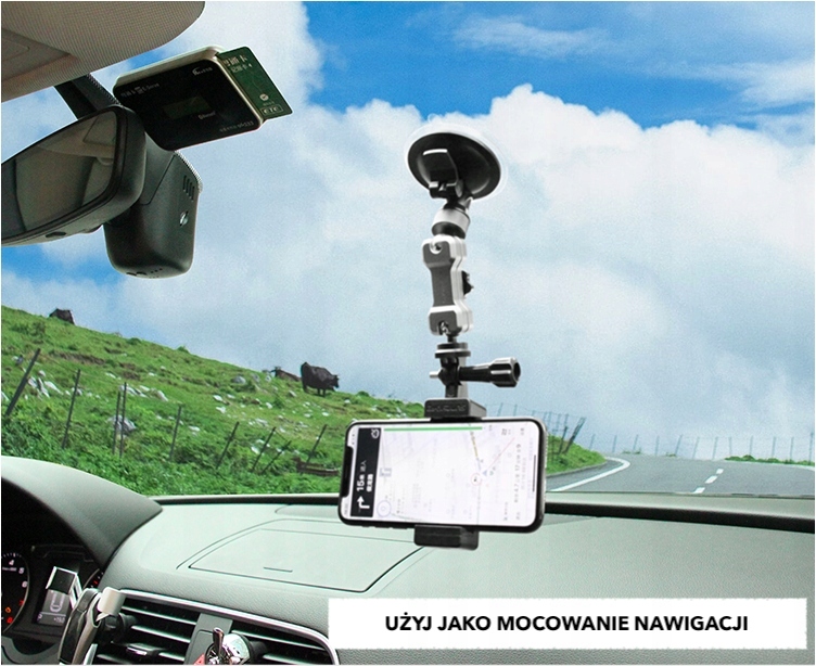 Присоска має алюмінієве з’єднання з двома кульовими головками, завдяки чому ви можете розташувати камеру під будь-яким кутом, щоб отримати найкраще відео під час водіння.