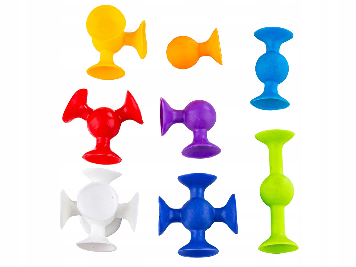 Присоски гнучкі, згинаються в різних напрямках і дозволяють будувати будь-які домовленості. Експериментуйте та подивіться, як весело присоски розважать вашу дитину у ванні, в машині, за столом і де завгодно :) Це дуже весело, і після відклеювання іграшка не залишає слідів.