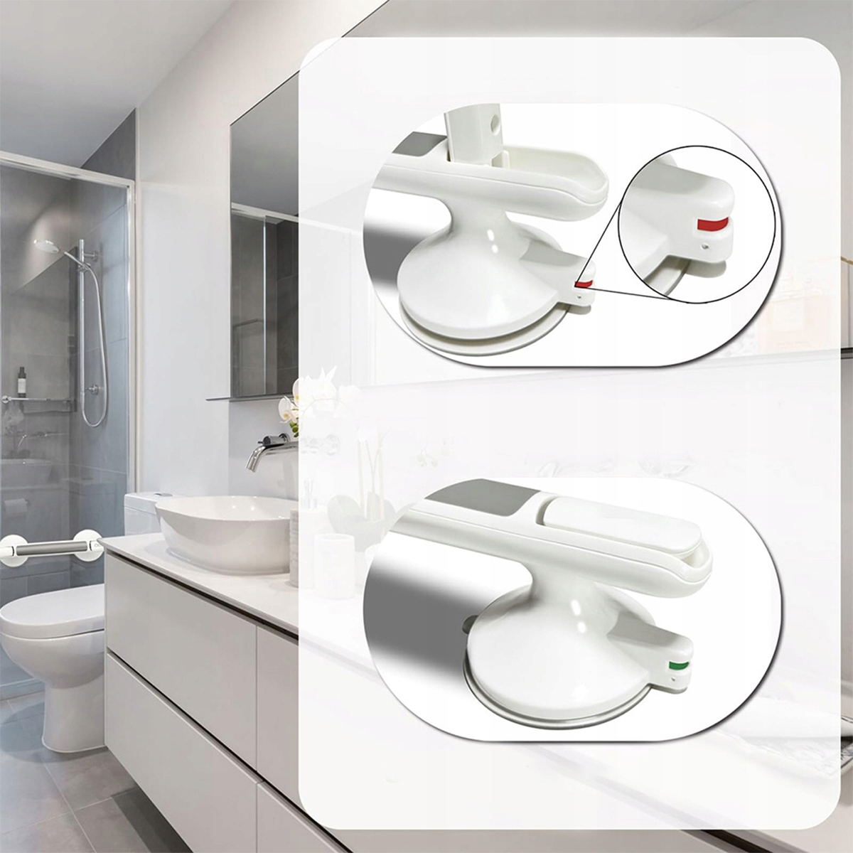 Завдяки інноваційній технології присоски, ручка може бути встановлена на плавних поверхнях без необхідності буріння або використання клею.