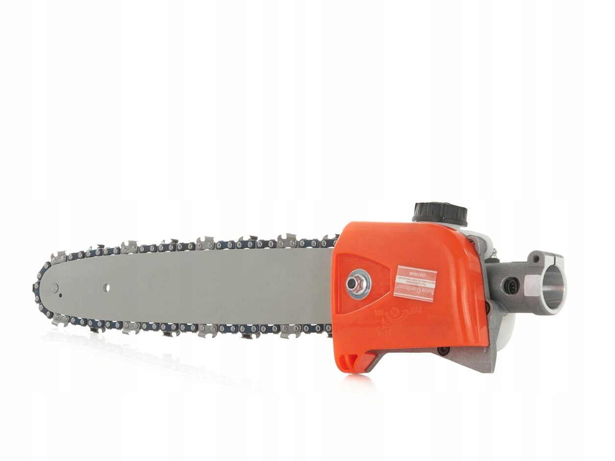 Насадка для ланцюгової пилки\кущоріза дозволяє легко та швидко перетворити бензиновий тример на пильний ланцюг на стрілі. Пристрій ідеально підходить для обрізання гілок і живоплотів у важкодоступних місцях. Насадка оснащена системою змащення ланцюга, що гарантує надійність виробу.