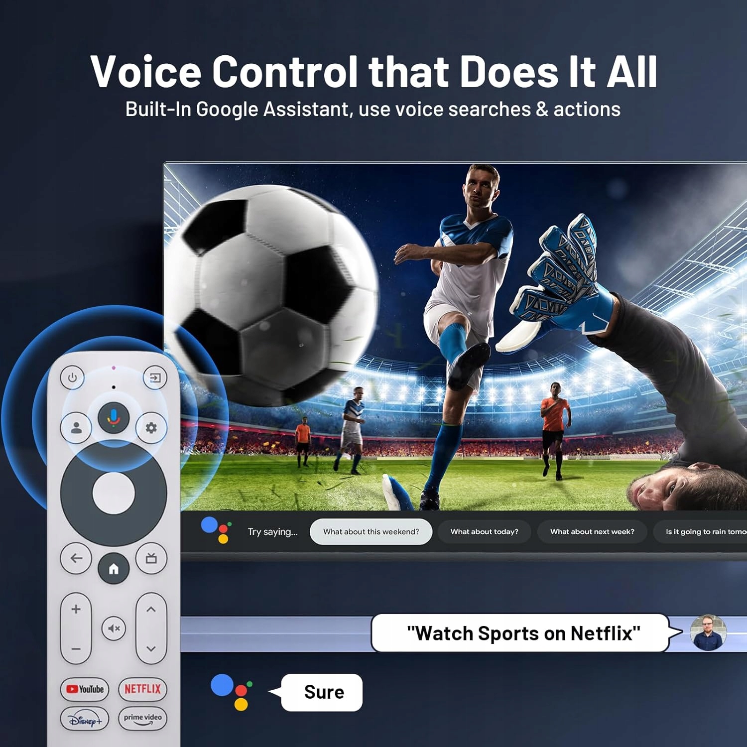 TV Box підтримує Google Assistant, тому ви можете легко знаходити програми, керувати відтворенням і регулювати гучність за допомогою голосових команд, не виконуючи складних дій вручну. Streaming TV Box підтримує бездротовий доступ до екрана, тож ви можете легко відображати вміст зі смартфона, планшета чи комп’ютера на екрані телевізора для кращого перегляду. Сумісний із пристроями Android та iOS.