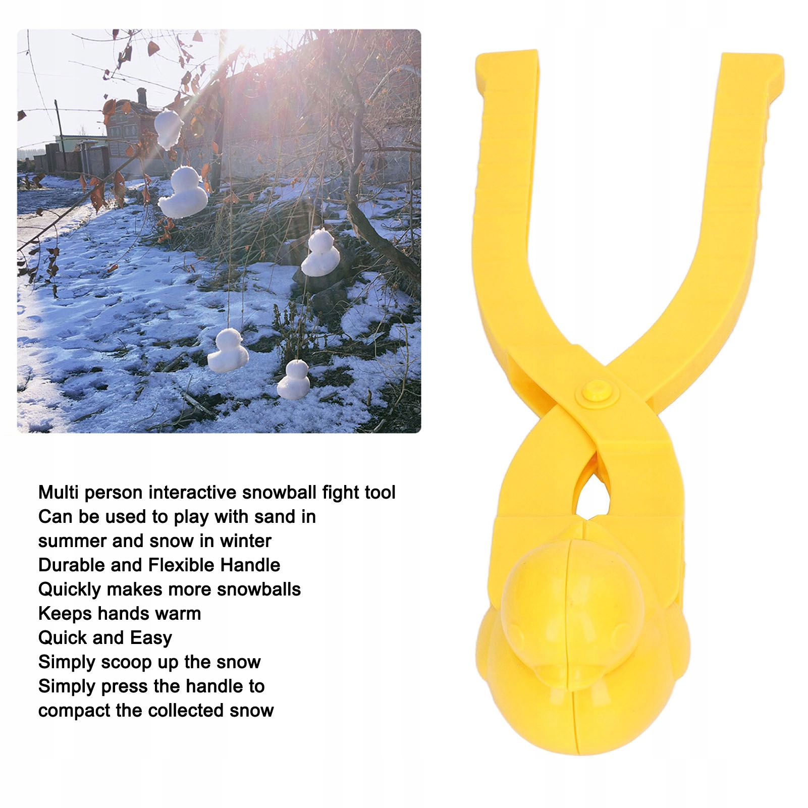 5. Швидко та легко: затиск для форми для сніжок допоможе вам створити ідеальні сніжки за лічені секунди. Просто збирайте сніг і натисніть на ручку, щоб ущільнити зібраний сніг.