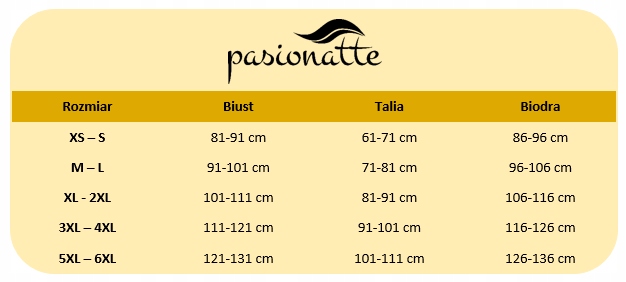 pasionatte - це бренд, створений для кожної жінки. Він поєднує унікальний стиль, високоякісні матеріали та піклується про кожну деталь обробки. Тіло xl/xxl