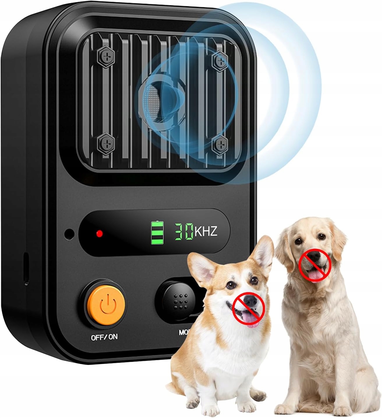 🐕🐕 Ефективний пристрій анти -Скіпу: оснащений трьома регульованими рівнями частот, у тому числі 30 кГц для маленьких собак, 20 кГц для приручених собак та 15/30 кГц для великих і неслухняних собак. Рівень частоти 15/30 кГц автоматично перемикається між ультразвуковими хвилями 15 кГц до 30 кГц. Максимальна відстань виявлення пристрою становить 26,2 футів, що може ефективно допомогти собаці зупинити гавкання. 4 Діод спалахує синім кожні 6 секунд, коли пристрій працює на трьох частотних рівнях. Коли звукове репелл запускається гавкачою собакою, червона індикаторна лампа залишається протягом 3 секунд. Коли рівень заряду акумулятора низький, червона лампа управління спалахує, і вона повинна заряджати.