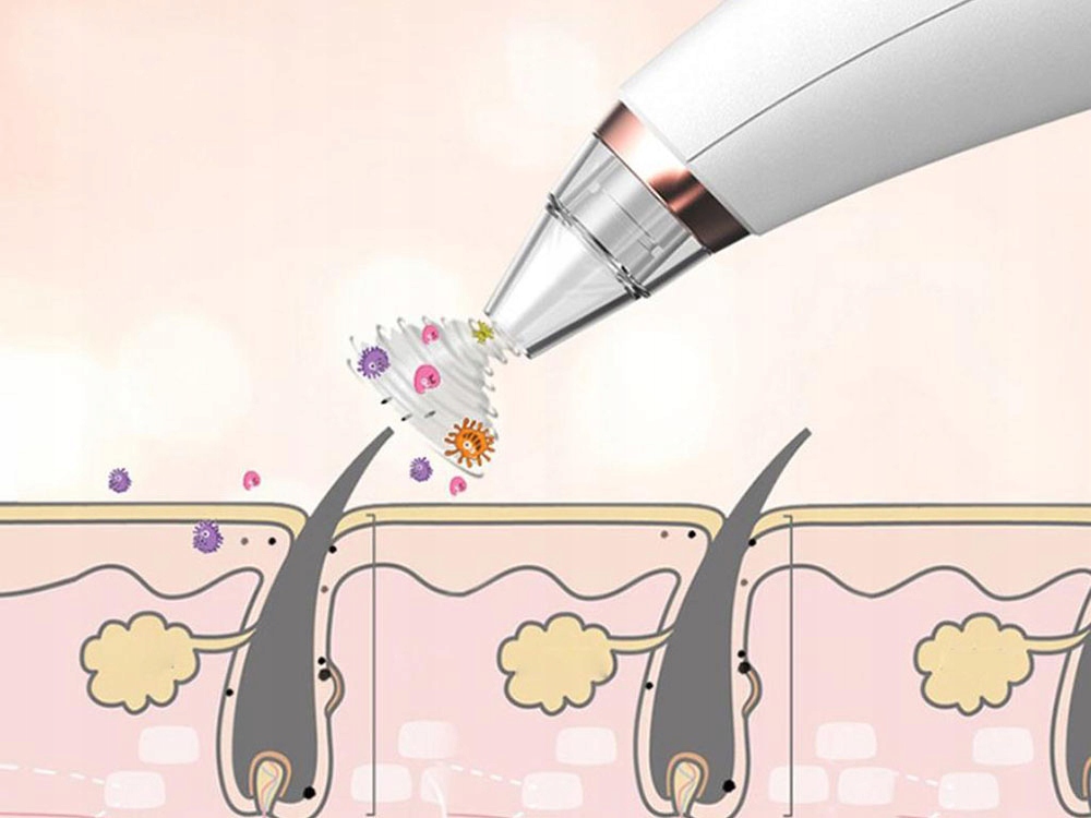 Апарат дозволяє самостійно видаляти чорні крапки та вугри. Очисник працює шляхом вакуумного видалення забруднень шкіри. Просто прикладіть наконечник до обличчя, увімкніть прилад і обережно рухайте ним, очищаючи окремі ділянки шкіри. Глибоко очищає пори.