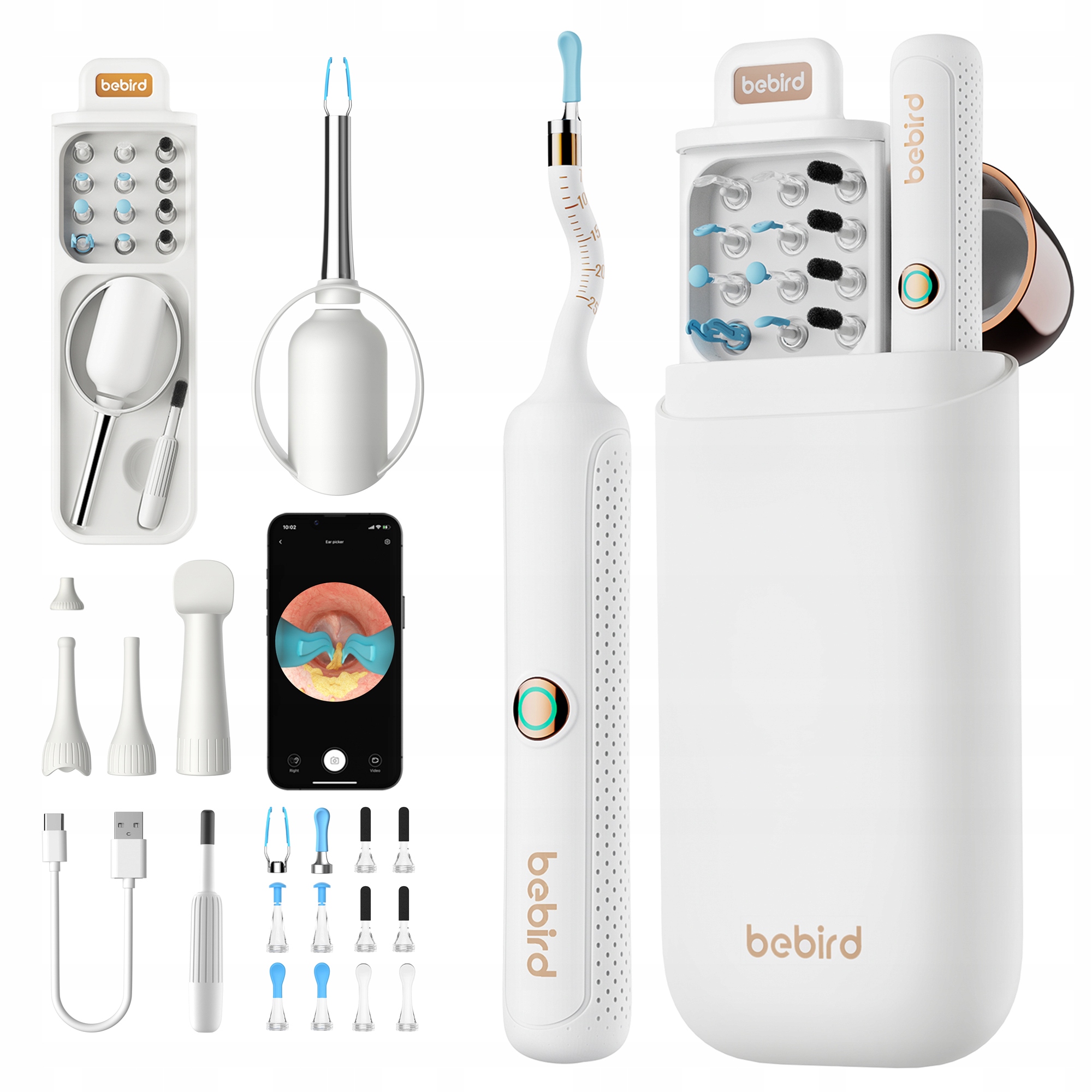 Пристрій для чищення вух Bebird EarSight Plus R37R — це сучасний отоскоп із HD-камерою, який може функціонувати як домашній ЛОР-набір 3-в-1 — для перевірки вух, носа та горла. Ультратонкий ендоскоп із можливістю перегляду в реальному часі в додатку (iOS / Android) дозволяє виявляти вушну сірку, воду або невеликі сторонні тіла та видаляти їх за допомогою м’яких силіконових ковпачків, підібраних для різних типів забруднення. Гнучкий гнучкий наконечник адаптується до форми слухового проходу, а обмежувач глибини та різьбове кріплення підвищують безпеку. Компактний футляр із надійною застібкою дозволяє легко зберігати, систематизувати аксесуари та брати набір із собою в будь-яку подорож. Це практичний, елегантний гаджет для всієї родини та чудова ідея подарунка.
