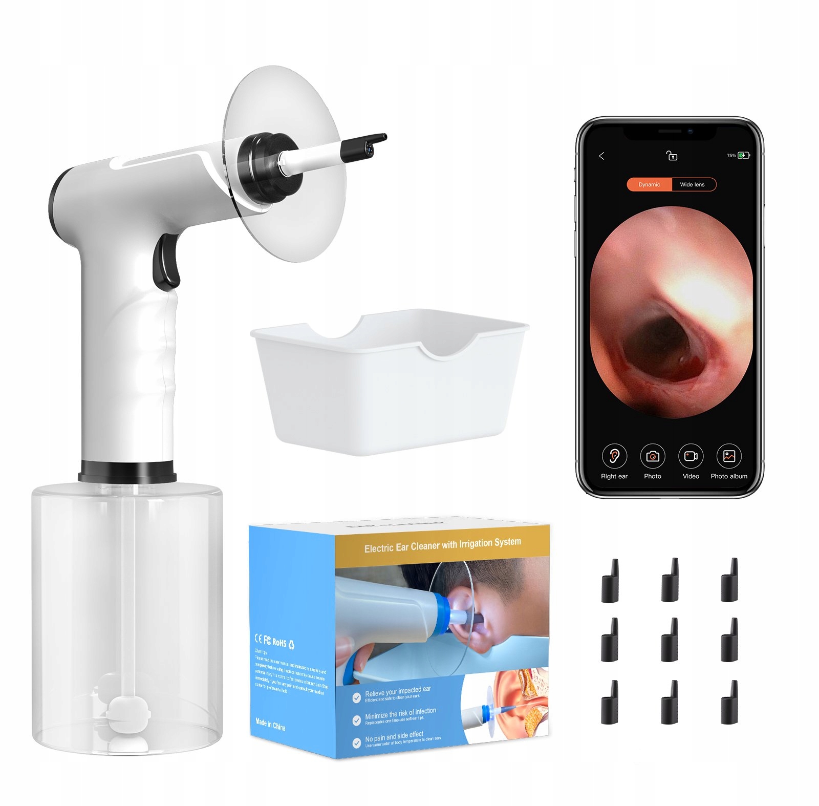 ПРИСТРІЙ ДЛЯ ОЧИЩЕННЯ ВУХ ІРИГАЦІЯ WIFI КАМЕРА ТЕЛ ДОДАТОК 2MP 500 мл