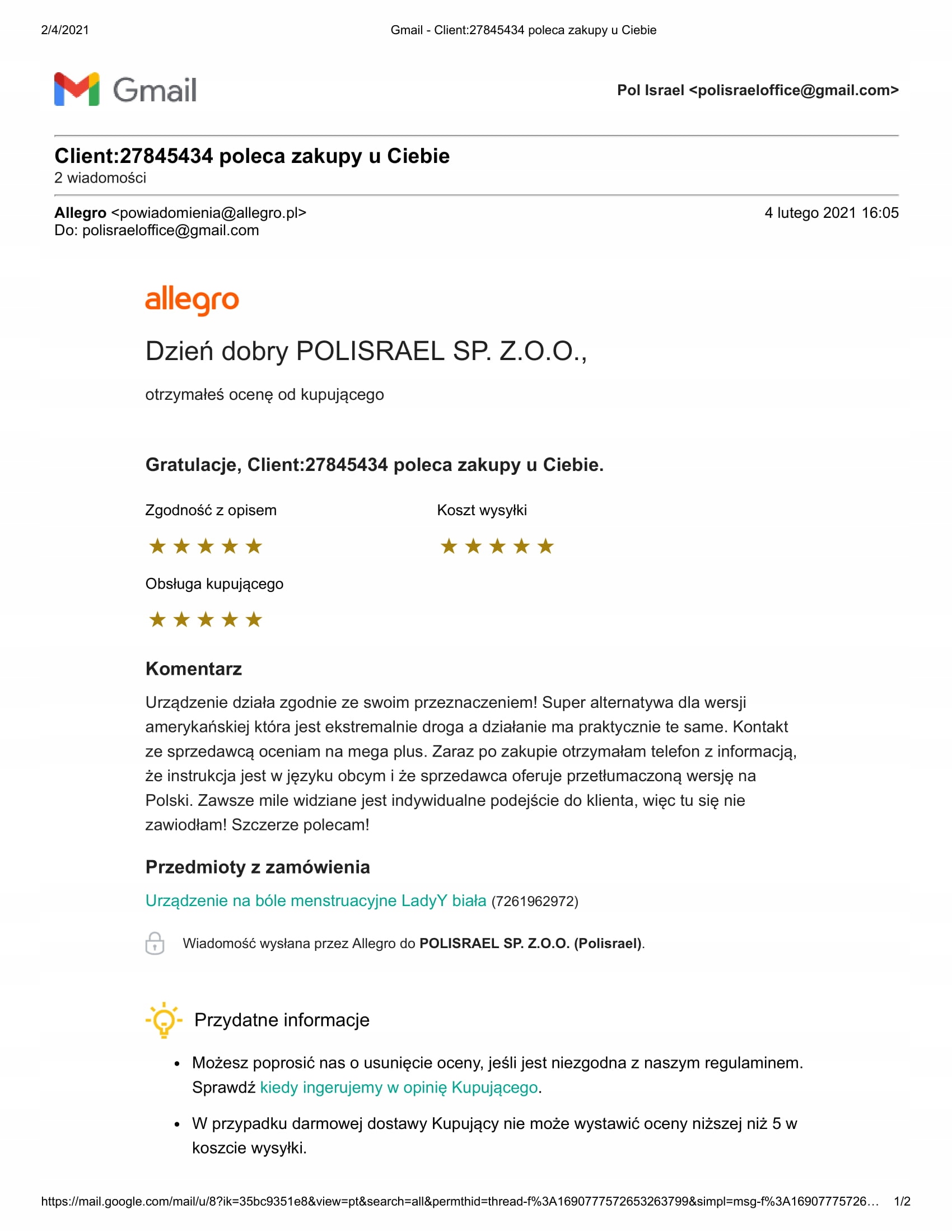 Просматривая «Устройство для менструальных болей LadyY Red», вы можете быть уверены, что данный товар из каталога «[rubrica_name]» будет доставлен из Польши и проверен на целостность. В цене товара, указанной на сайте, учтена доставка из Польши. Внимание!!! Товары для Евросоюза, согласно законодательству стран Евросоюза, могут отличаться упаковкой или наполнением.