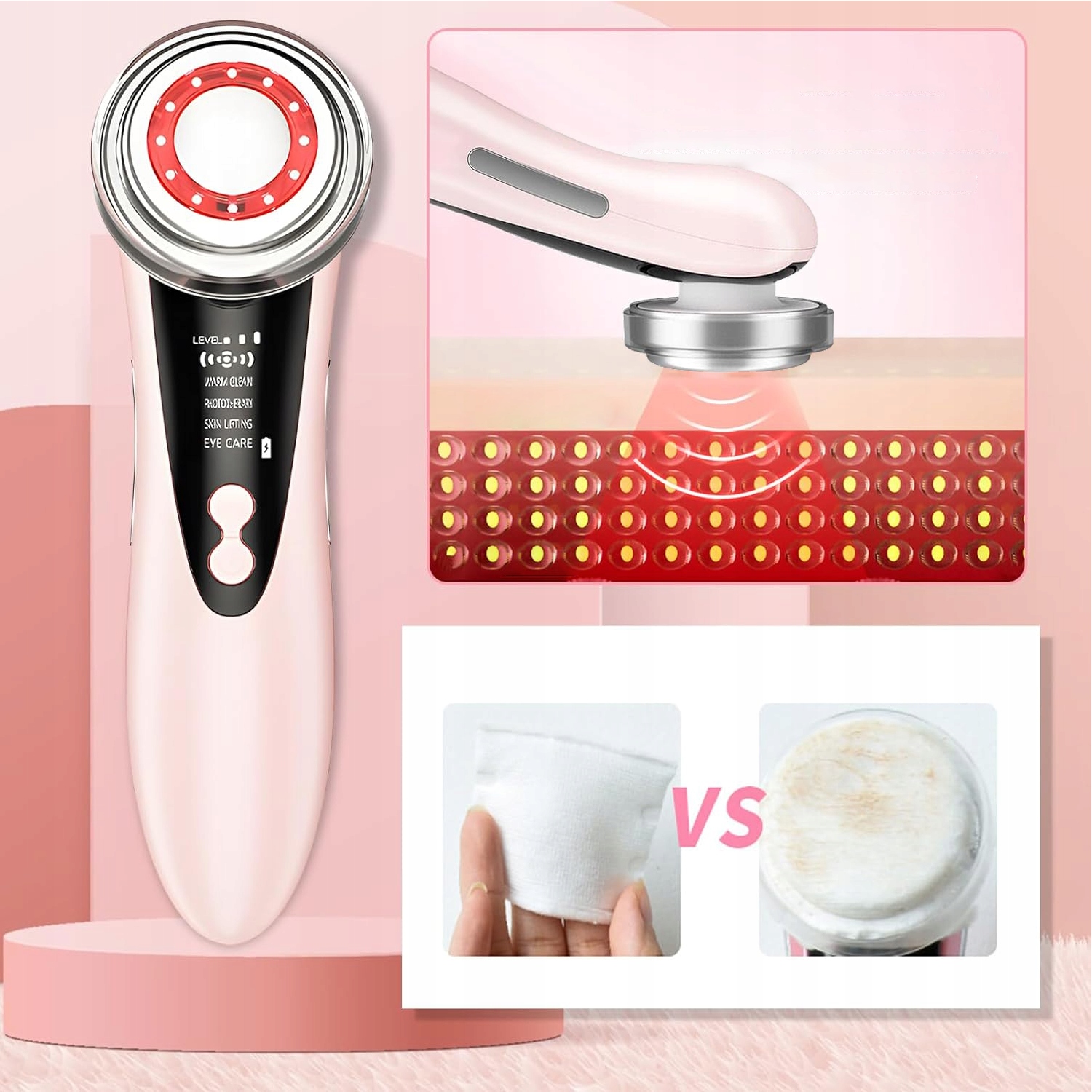 👉 Він використовує технологію розсіювання іонів та високочастотні ультразвукові коливання для відкриття пори, видалення залишків макіяжу, очищення пори з олії та бруду, зменшення засмічення пори та очищення шкіри.