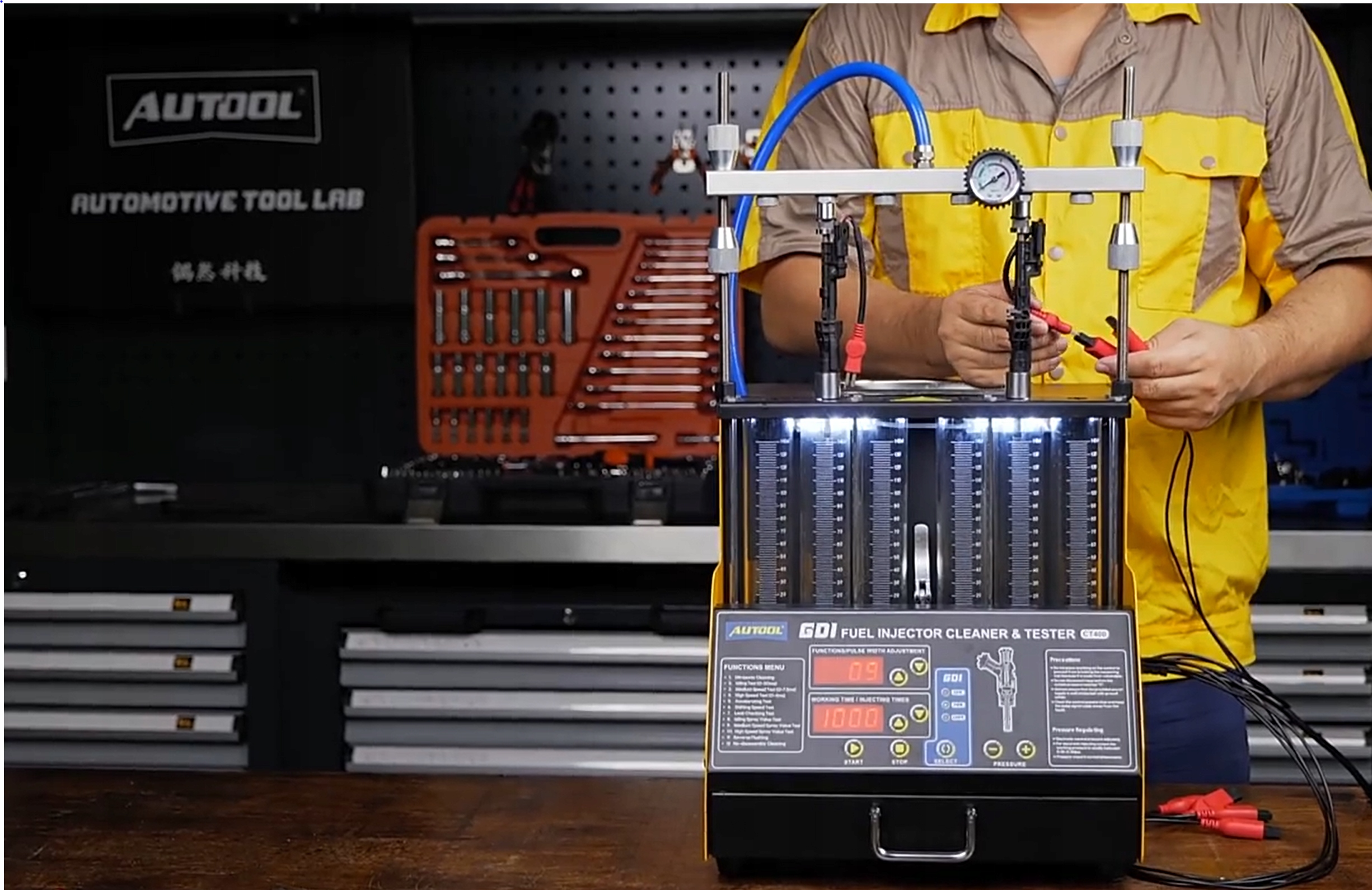 Асортимент засобів для очищення автомобільних форсунок AUTOOL включає випробування форсунок під низьким тиском, а також випробування форсунок під високим тиском, які широко використовуються в форсунках GDI, EFI, FSI та інших типах форсунок для автомобілів, мотоциклів і яхт.