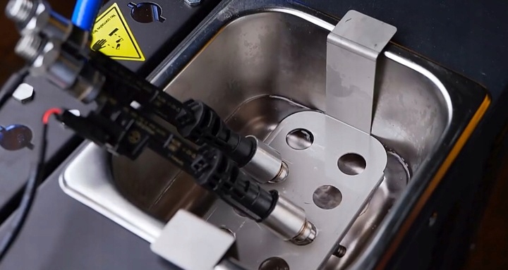Очищувальна рідина використовується для очищення відкладень (наприклад, нагару) на паливних форсунках і зазвичай є сильно корозійною та легкозаймистою. Щоб отримати найкращий результат тесту, рекомендується використовувати професійну ультразвукову рідину для чищення інжекторів. Якщо його немає в наявності, замість очисної рідини рекомендується використовувати медичний спирт із вмістом спирту понад 75%, але зауважте, що ефект може бути недостатнім.
