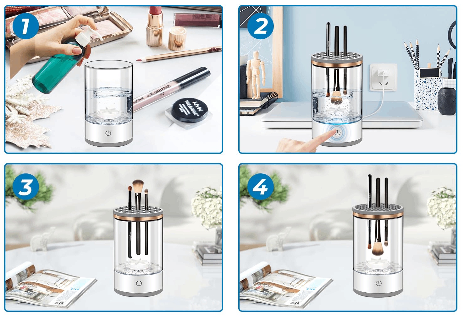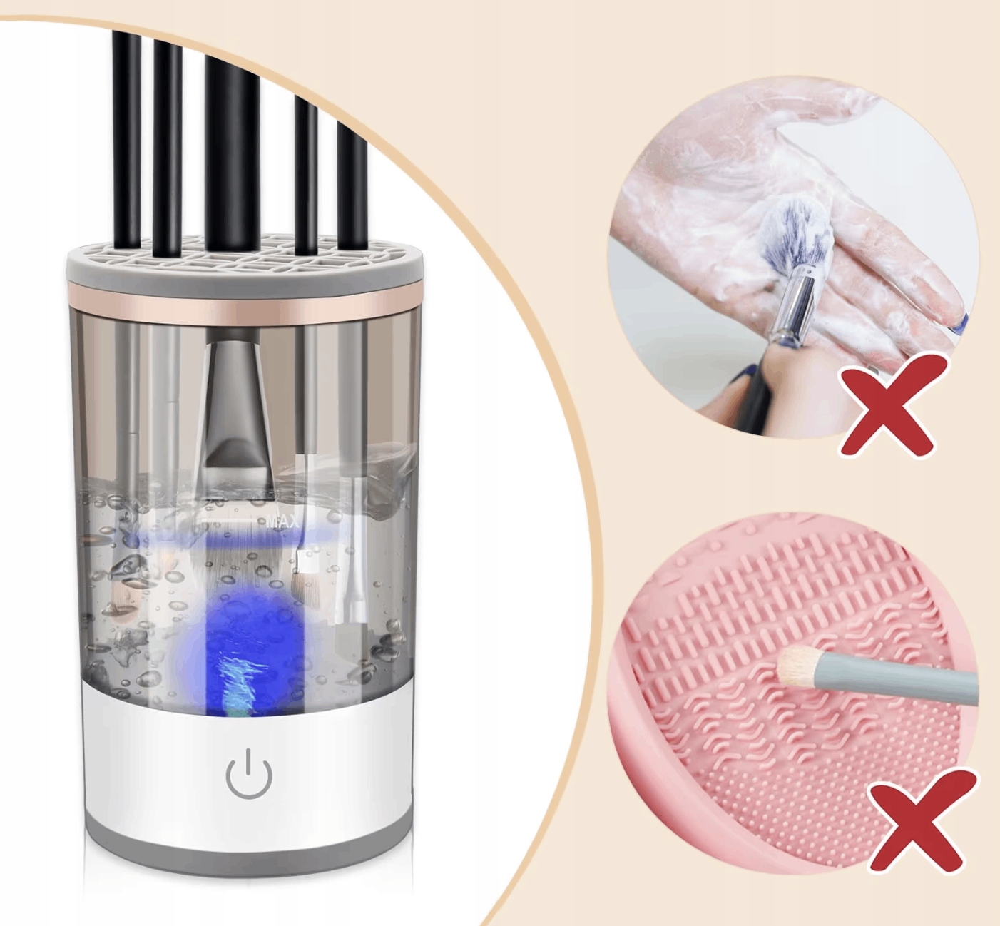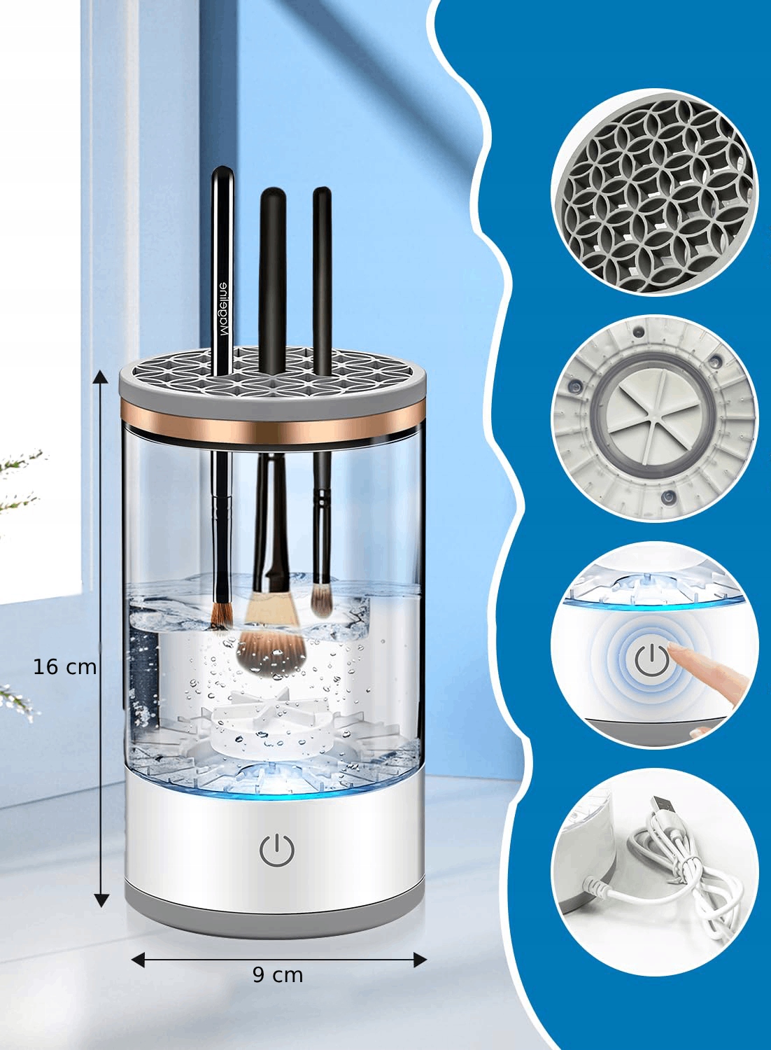 Подбайте про свої косметичні щітки за допомогою сучасної електричної мийки. Цей пристрій забезпечує швидке та ефективне очищення, видаляючи залишки косметики з ворсу щітки. Завдяки м'якому обертанню мийка безпечна для щіток. USB-живлення забезпечує зручність і мобільність. Ідеальне рішення для людей, які цінують гігієну та дбають про довговічність своїх косметичних аксесуарів.