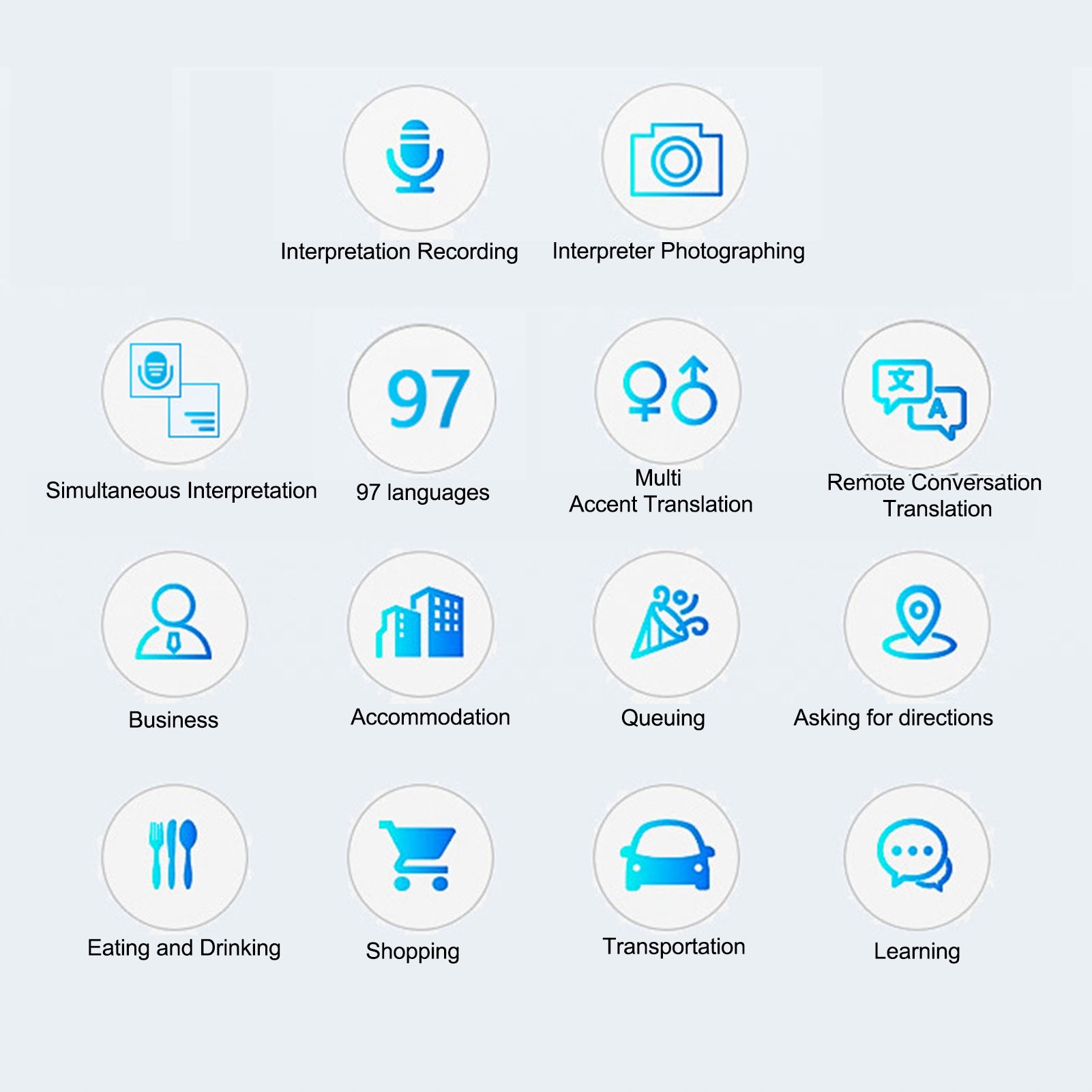 Функція:1. ПІДТРИМКА 97 МОВ: портативний пристрій перекладу легко спілкується зі світом у режимі реального часу, долаючи мовні бар’єри, перекладаючи текст, фотографії та голос, підтримуючи 97 мов.