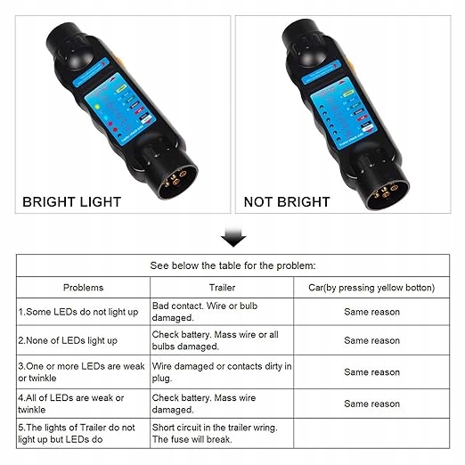 - [Застосування] Завдяки 6 світлодіодним дисплеям ви можете легко спостерігати. Показати, чи несправна проводка в автомобілі чи причепі.