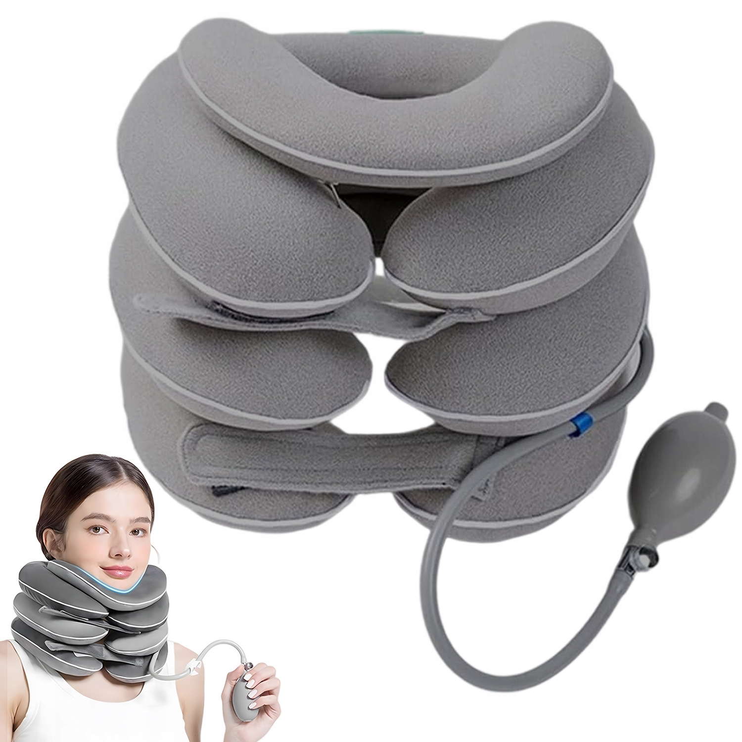- - МОЖНА ЛЕГКО ЗДУВАТИ ТА СКЛАДАТИ ДЛЯ ЗБЕРІГАННЯ, що полегшує перенесення та дозволяє насолоджуватися розтягуванням шиї в будь-який час і будь-де.