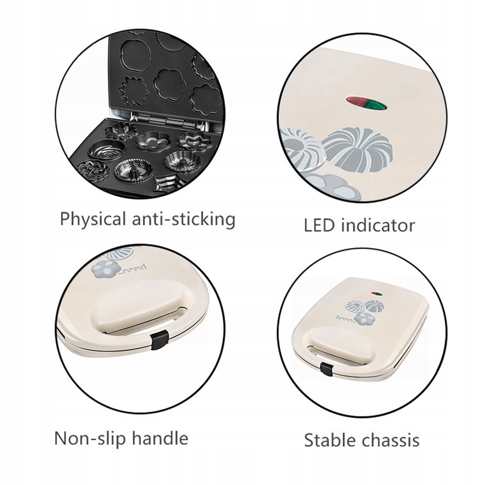 2. [Антипригарна нагрівальна пластина] Нагрівальна пластина цього пристрою для випікання печива виготовлена з антипригарного матеріалу, безпечного, легкого для формування та зручного для чищення.