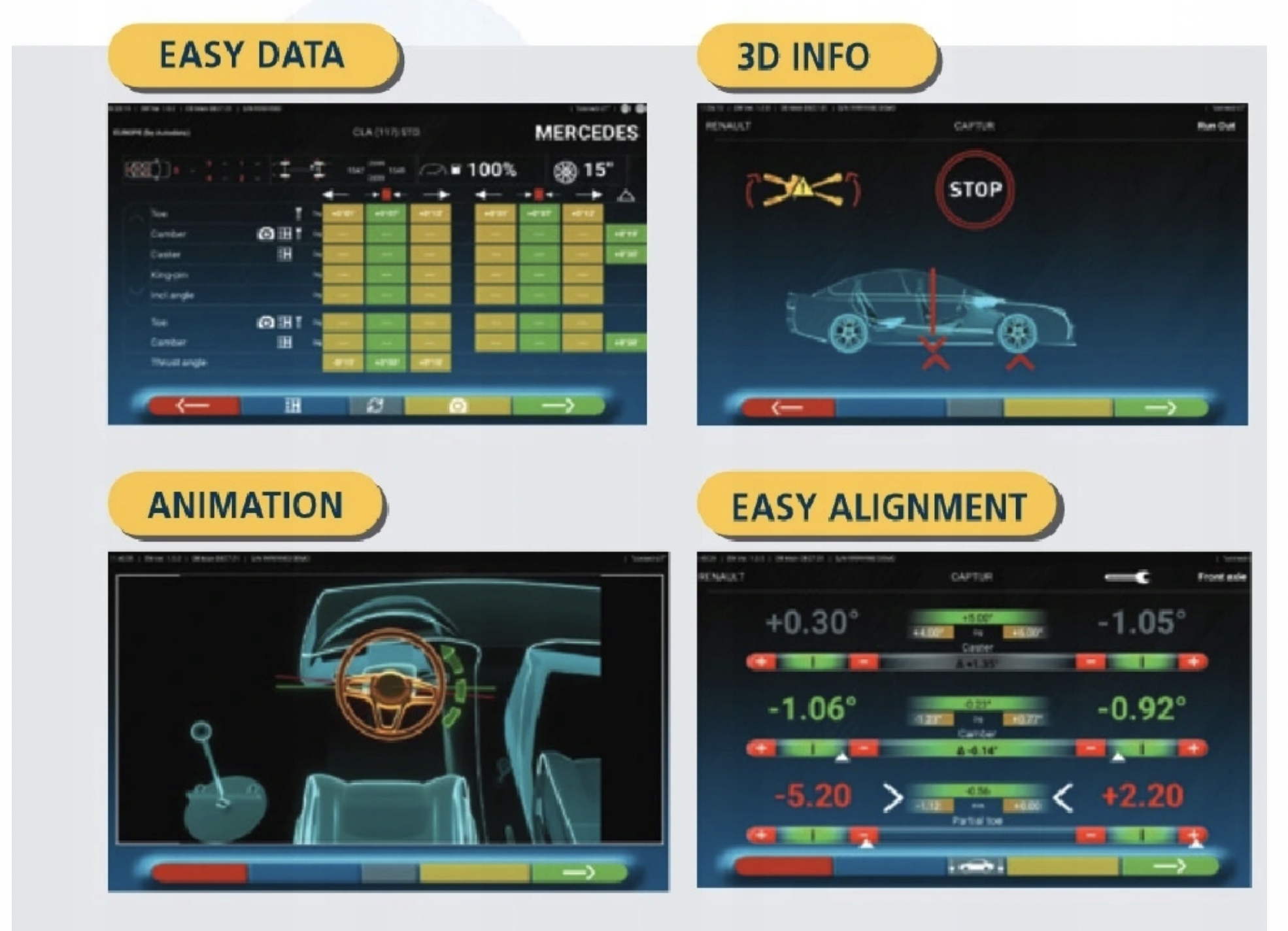 Тепер доступний революційний та інноваційний пристрій для налаштування коліс!! Нова концепція від італійського виробника Ravaglioli для регулювання коліс із 8 датчиками. Повністю не потребуючи комп’ютера, його можна використовувати в середовищі Wi-Fi із планшетом. Компактна, технологічно просунута альтернатива поточним рішенням на ринку. Немає шафи з керуючим комп'ютером. Повна переробка вимірювальної головки з підшипниками для швидкої компенсації та одним енкодером (рішення найвищих моделей) Інноваційна концепція зберігання вимірювальних головок і затискачів на спеціальних панелях, завдяки чому ми економимо простір.
