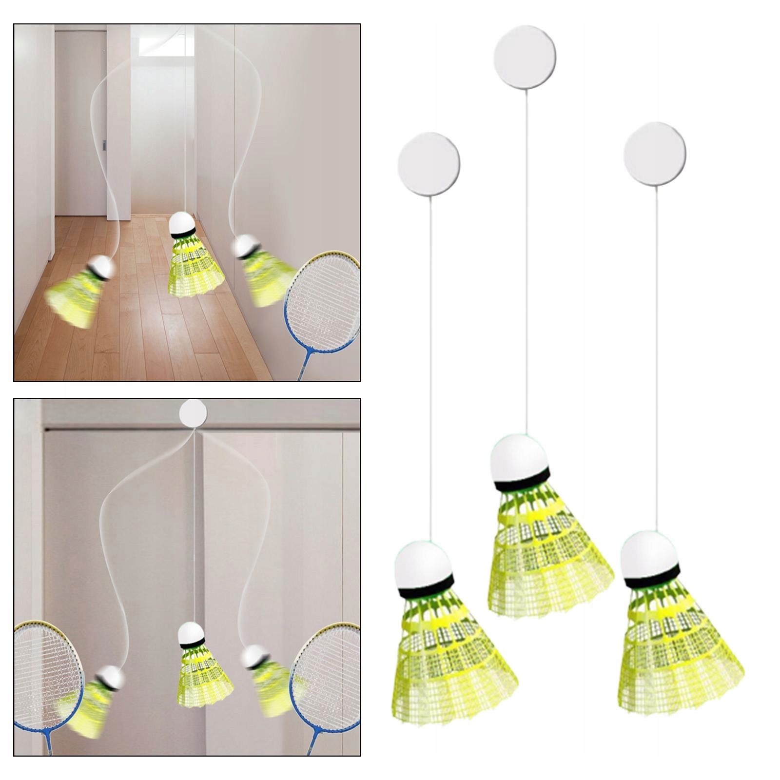 [проста установка]: Тренер для незалежної практики бадмінтону оснащений невизначеною самостійною наклейкою, яка полегшує установку. Просто натисніть сильно і не пошкоджуючи стіни. Його можна встановити де завгодно, завдяки якому він є універсальним та зручним.