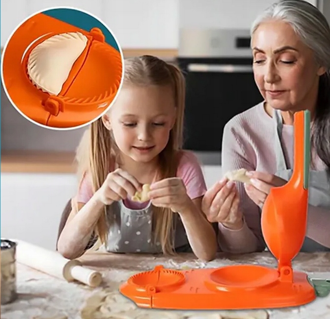 - Практична конструкція 2in1: один інструмент, який не тільки вирізав ідеальні колеса, виготовлені з тіста, але й точно натискають на них, створюючи ідеальні пельмені.