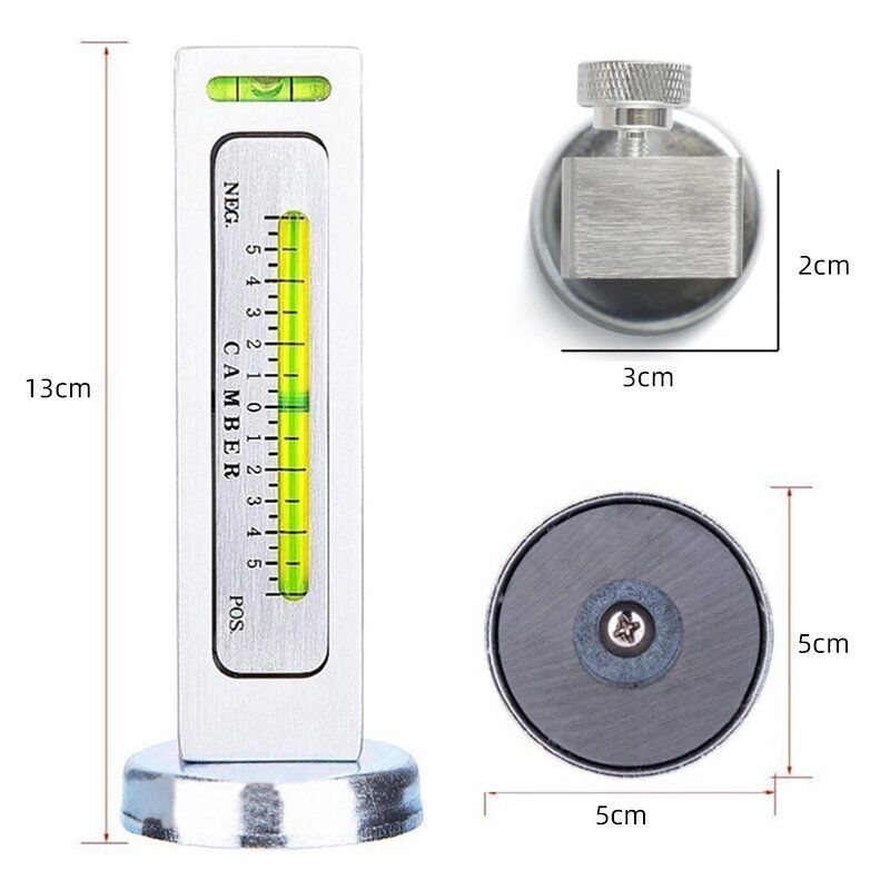 1. Легка конструкція. Легко читати та зручно використовувати. Сильний смоктання. Два бульбашки позиціонування. Підходить для ретельної перевірки кута коліс та нахилу коліс. Це дозволяє повернути амортизатор до початкового положення нахилу після демонтажу та складання. Він має просте регулювання вирівнювання від -5 градусів до 5 градусів. Професійний, регульований магнітний лічильник вимірює кут нахилу та нахилу колеса на маточини або гальмівному диску, придатного для ремонту пасажирських автомобілів, мотоциклів, фургонів, позашляховиків.