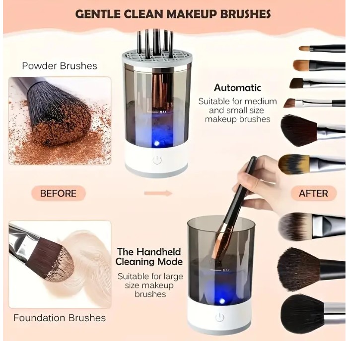 Багатофункціональний компактний пристрій для очищення пензликів косметики 4в1. Він забезпечує ефективне, глибоке та дбайливе очищення, тому ваші пензлі для макіяжу завжди будуть чистими та готовими до використання.