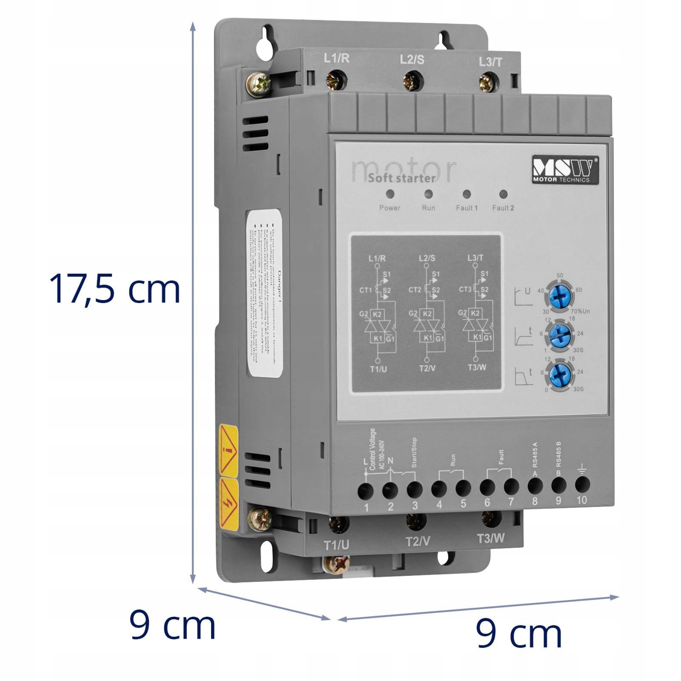 Окрім високої ефективності, легка стартова система MSW забезпечить оптимальну енергоефективність. Інтегрований байпас зменшить втрати потужності, як тільки двигун досягне повної потужності. Автоматична, безконтактна функція запуску/зупинки зменшить споживання під час роботи. Крім того, трифазний контроль надійно регулює крутний момент, що спричинить плавний початок двигуна без ривків. Захист перевантаження 10 -го класу забезпечить безпечну роботу, запобігаючи пошкодженню машини і, таким чином, покращити опір двигуна. Soft Start 400 V порадує вас легким обслуговуванням, і завдяки компактній конструкції це займе мало місця.