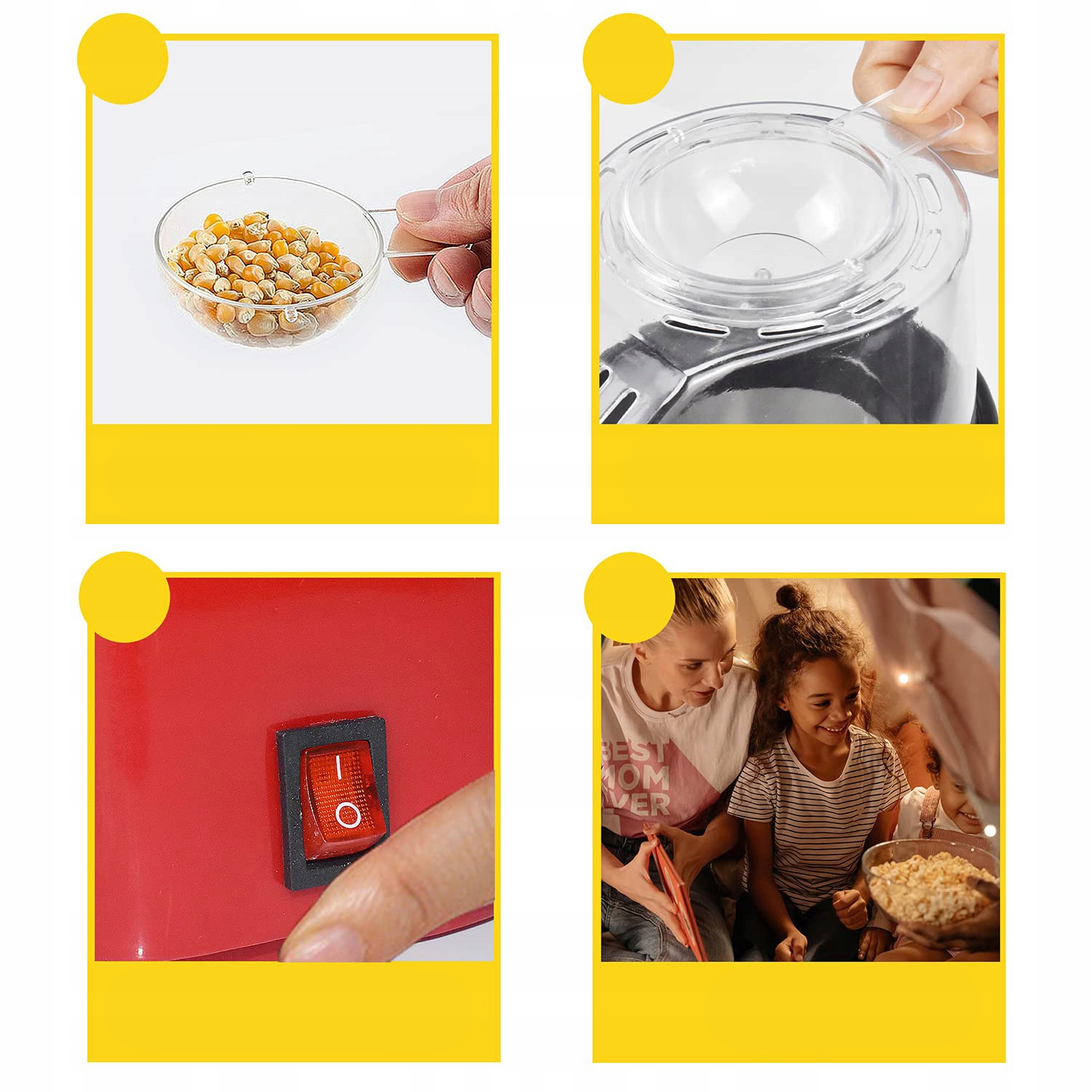 4. Легке очищення: Щоб отримати ідеальні результати, просто протріть вологою тканиною. Вийміть кришку і вимірюючи чашку, потім покладіть їх у посудомийну машину, щоб полегшити та мити. Завдяки цьому у вас буде більше часу, щоб насолодитися попкорном та заощадити прибирання часу. Примітка. Не використовуйте машину для попкорну довгий час. Рекомендується охолонути до кімнатної температури перед використанням.