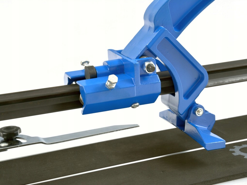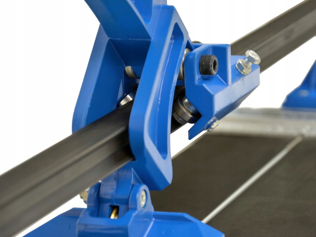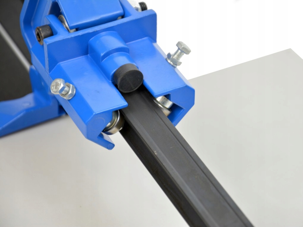 Професійний апарат для різання плитки з довжиною робочої поверхні 800 мм. Міцне лезо з карбіду вольфраму, покрите шаром титану, забезпечує швидке різання. Стійка рейка з ріжучим механізмом на шарикопідшипниках забезпечує точний розріз плитки товщиною до 16 мм. Металева лінійка дозволяє точно виміряти зріз і встановити кут різу від 0 до 60°. Алюмінієва основа з гумовими ніжками забезпечує стійкість пристрою під час роботи.
