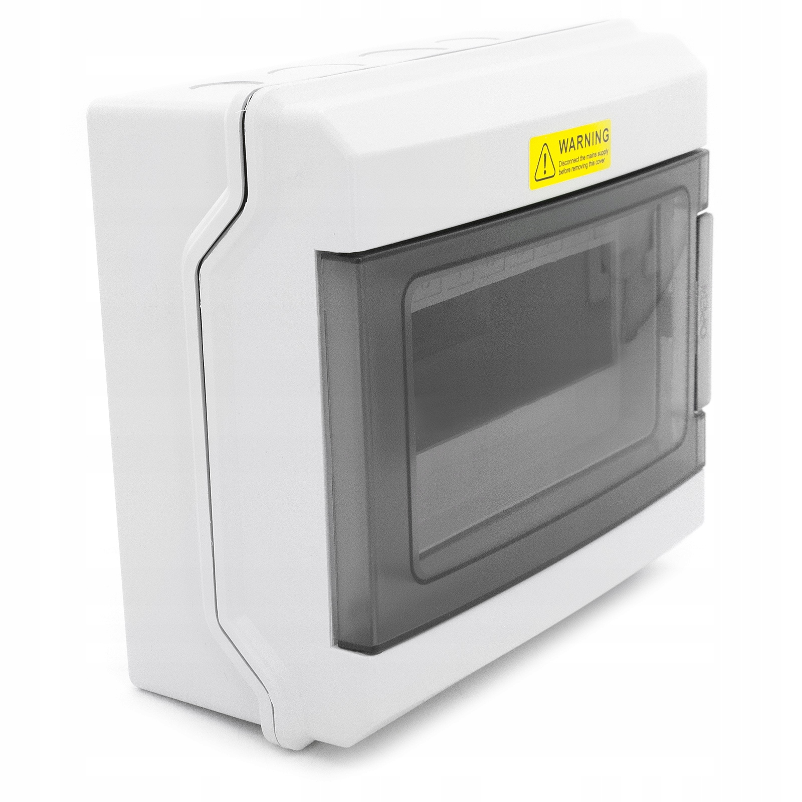 Конструкція розподільчого пристрою поверхневого монтажу заснована на міцному корпусі з високоякісного ABS-матеріалу з антистатичними властивостями та високою стійкістю до УФ-випромінювання. Всередині корпусу є DIN-рейка та клемні колодки N+PE.