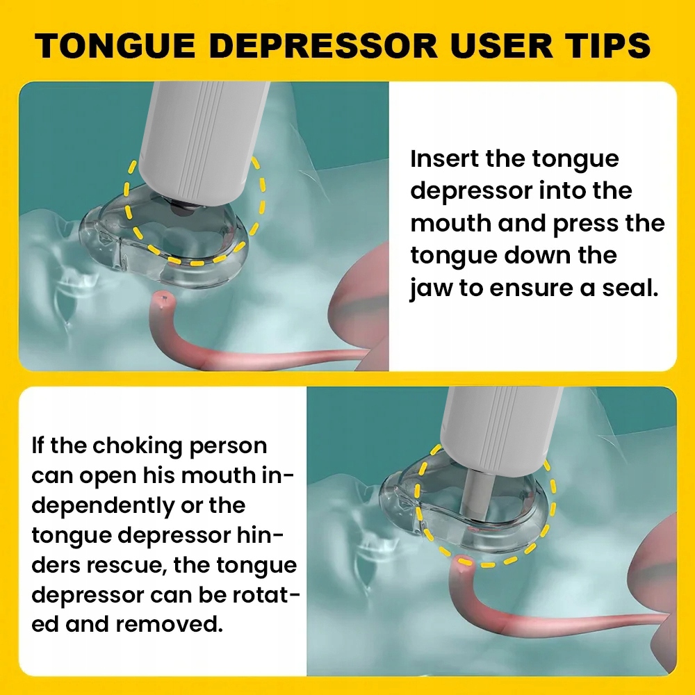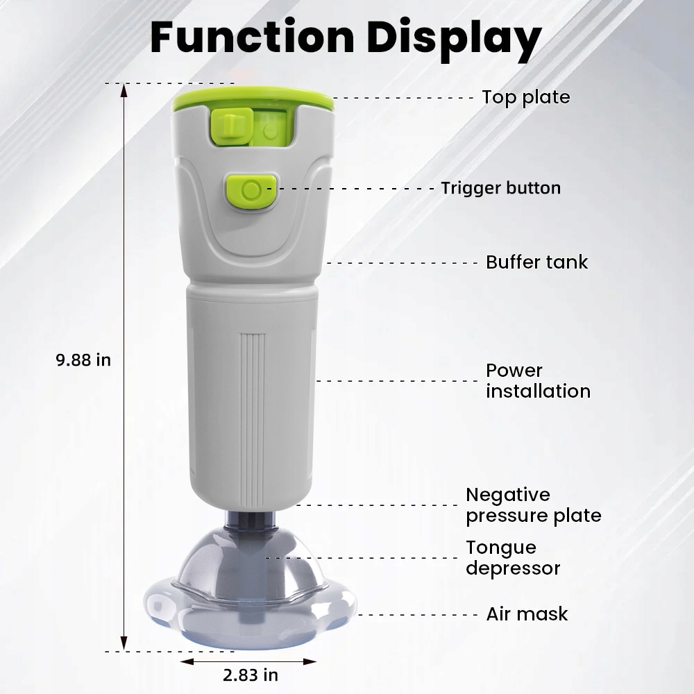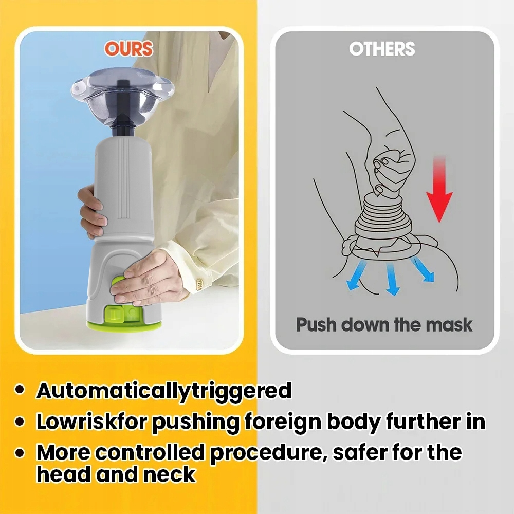 Використовуючи принцип вакуумного тиску, пристрій створює миттєвий негативний потік повітря у верхніх дихальних шляхах, безпечно видаляючи захоплені сторонні тіла без ризиків, пов’язаних із традиційними методами, такими як маневр Геймліха, який не підходить для немовлят.