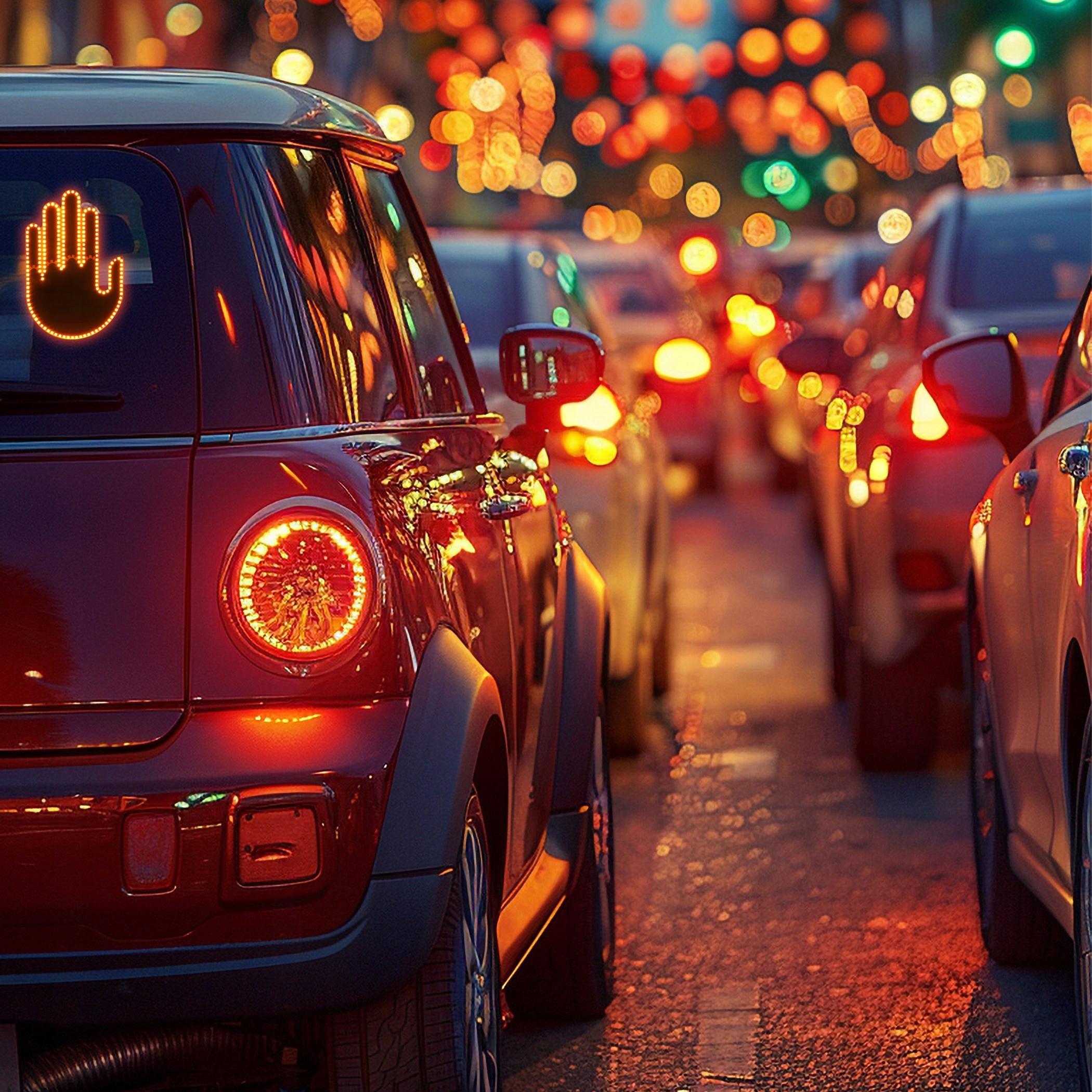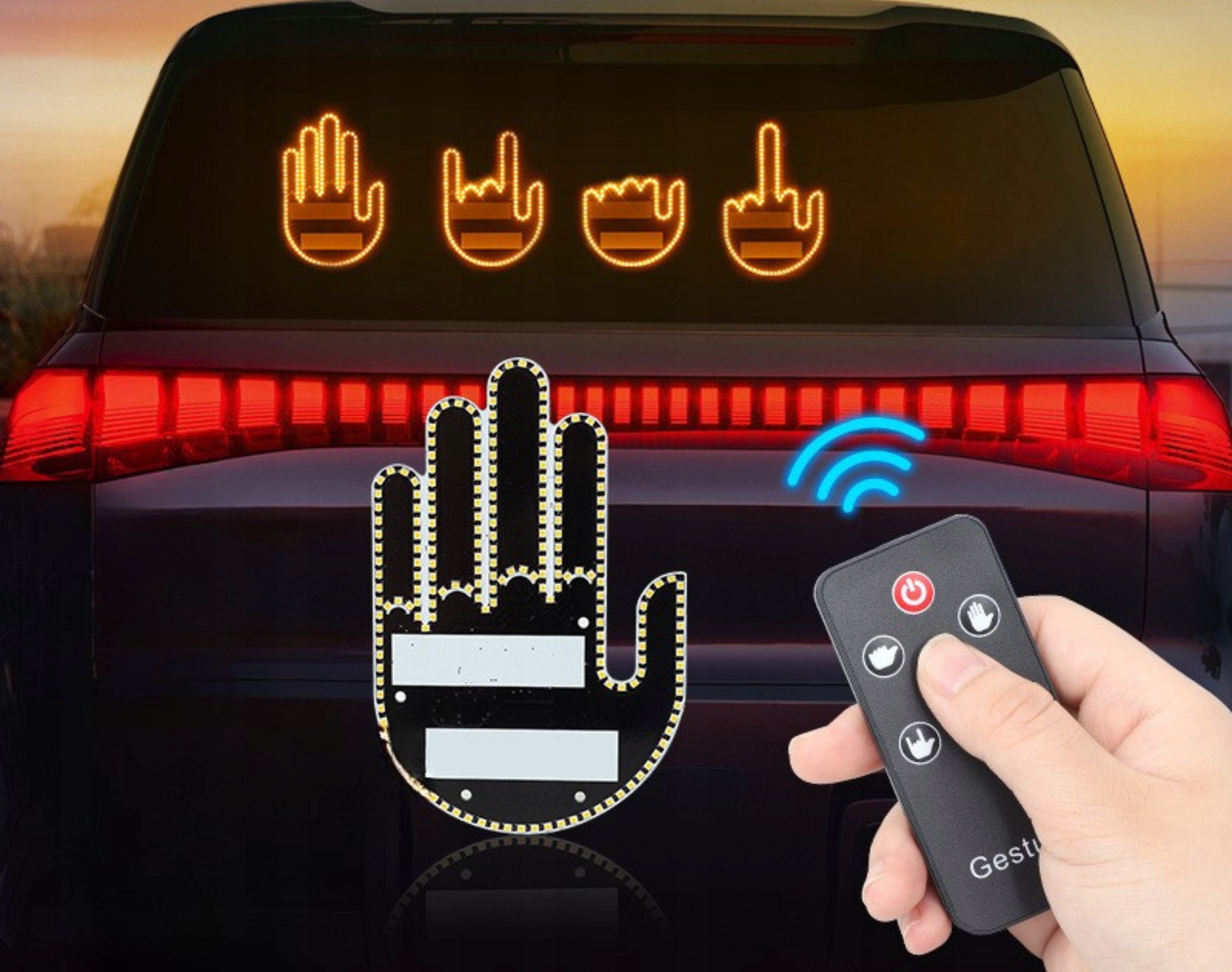 Сучасне світлодіодне освітлення У формі руки є інноваційний спосіб на безпеці та вражаючі спілкування під час руху. Завдяки пілоту Ви можете легко вибрати один із жестів 4 , , передаючи різні повідомлення іншим людям учасникам трафіку.