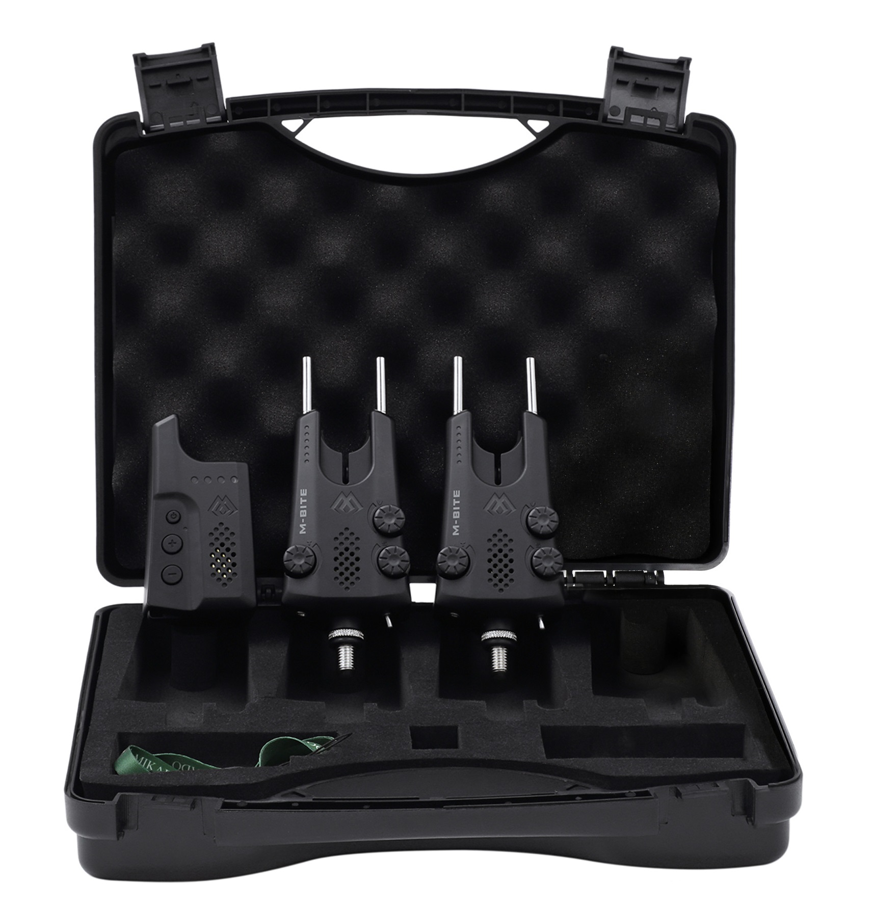 M-Bite-це пристрої для сигналізації CARP найвищого класу, що входять до набору з штаб -квартирою. Оснащений унікальною системою візуальної сигналізації, використовуючи освітлений логотип та світлодіодну лінію. Об'єм, чутливість, тон та бездротова сигналізація 1: 1.