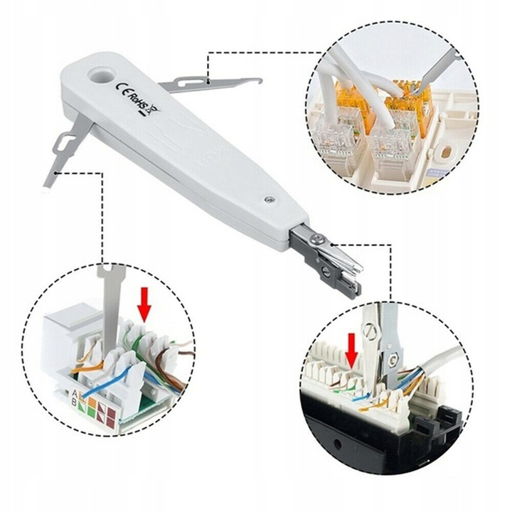 Повний набір - набір включає тестер кабелю , кримпер, штовхач, вилки RJ 45, знімач, плоска та хрестова викрутка та інструменти для різання кабелю. Усе це дозволяє усунути будь-які несправності та є обов’язковим для кожного інсталятора мережі.