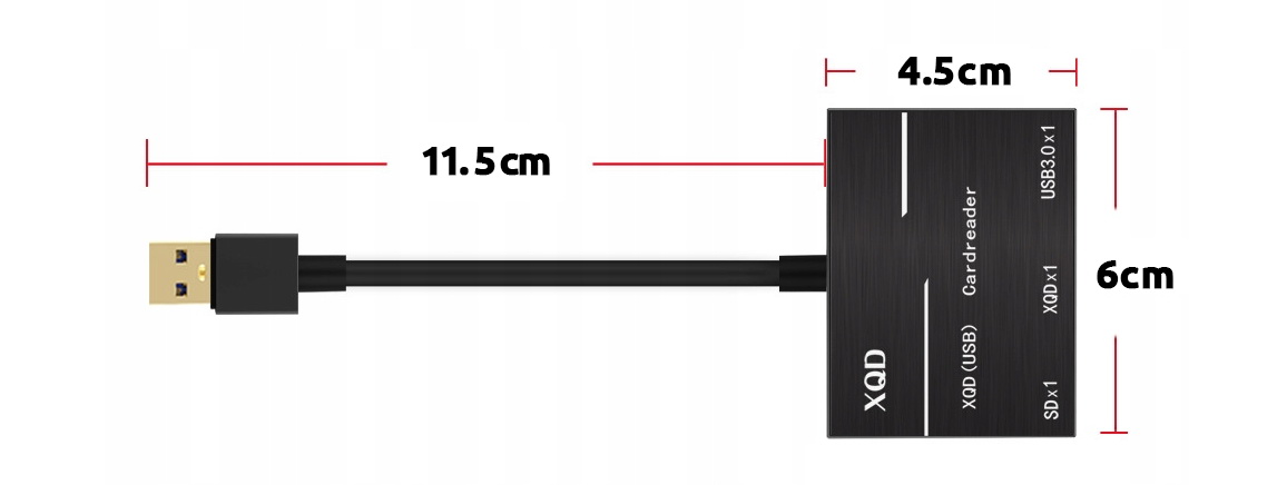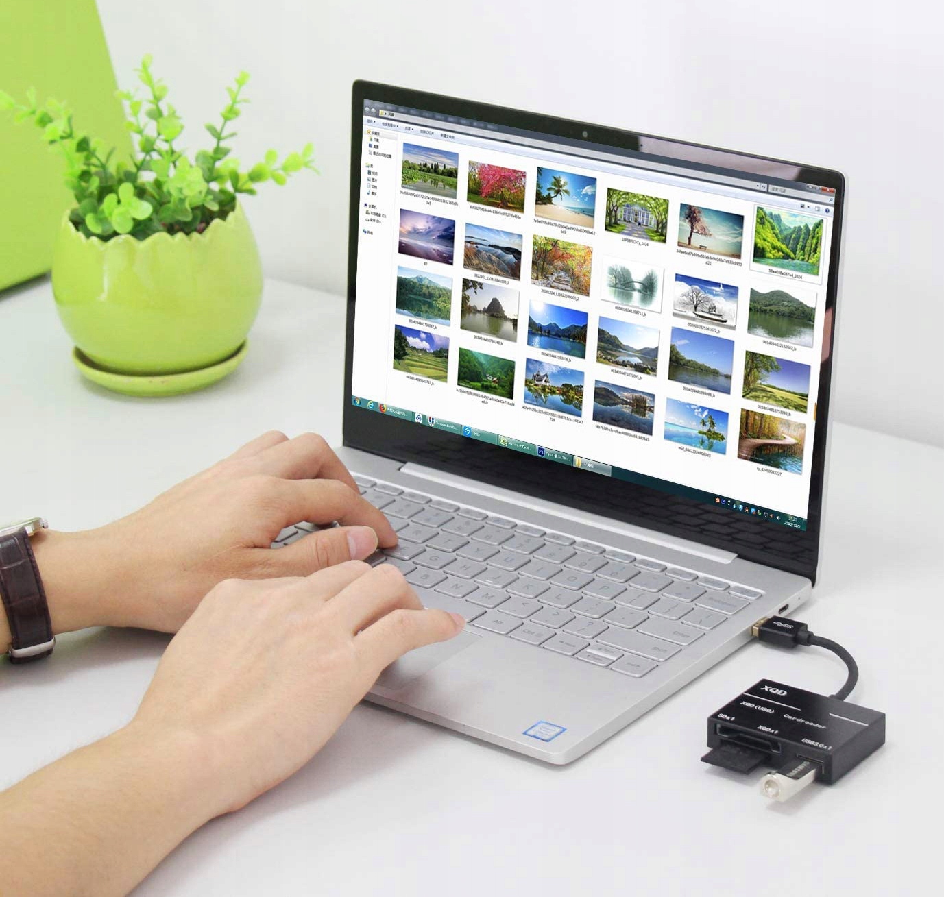 Новий, універсальний пристрій для зчитування XQD / карток пам’яті SD / SDHC / SDXC / USB 3.0 з кабелем USB 3.0. Це дозволяє легко передавати великі обсяги фотографій у форматі RAW і відео 4K на комп’ютер або ноутбук (за лічені секунди), зі швидкістю передавання до 500 МБ/с для карт XQD і до 104 МБ/с для SD карти. Додатковий порт USB 3.0 дозволяє підключати мишу, клавіатуру, диск, флешку чи інший USB-пристрій до пристрою для читання.