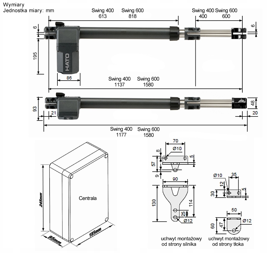 Привід Swing 600 від HATO - це сучасний привід, розроблений для інтенсивного використання. Міцні та надійні приводи гарантують безвідмовну роботу протягом багатьох років. Міцність і стабільність роботи забезпечують двигуни, що живляться від мережі230V - Це робить цей накопичувач практично незнищенним. Приводи виготовлені з міцної сталевої конструкції. Спеціальна конструкція стійка до пилу та води. Щоб зберегти найвищу якість виробництва та матеріалів, приводи Swing Drive виробляються в Італії. Завдяки своїй безвідмовній, простій конструкції та довговічності, SWING 600 може бути успішно використаний в компаніях або в'їзних воротах житлових масивів або інших об'єктів інтенсивного використання. Привід розрахований на безперервну роботу.